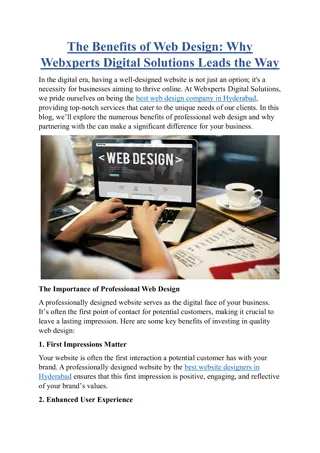 Are you in search of the top web design company in Hyderabad? Look no further than Webxperts Digital Solutions! Our team of skilled professionals is dedicated to creating stunning websites tailored to your specific needs. Enhance your online presence with our state-of-the-art web development services and designs. Contact us today 91 8466886735nVisit : //webxperts.in/
