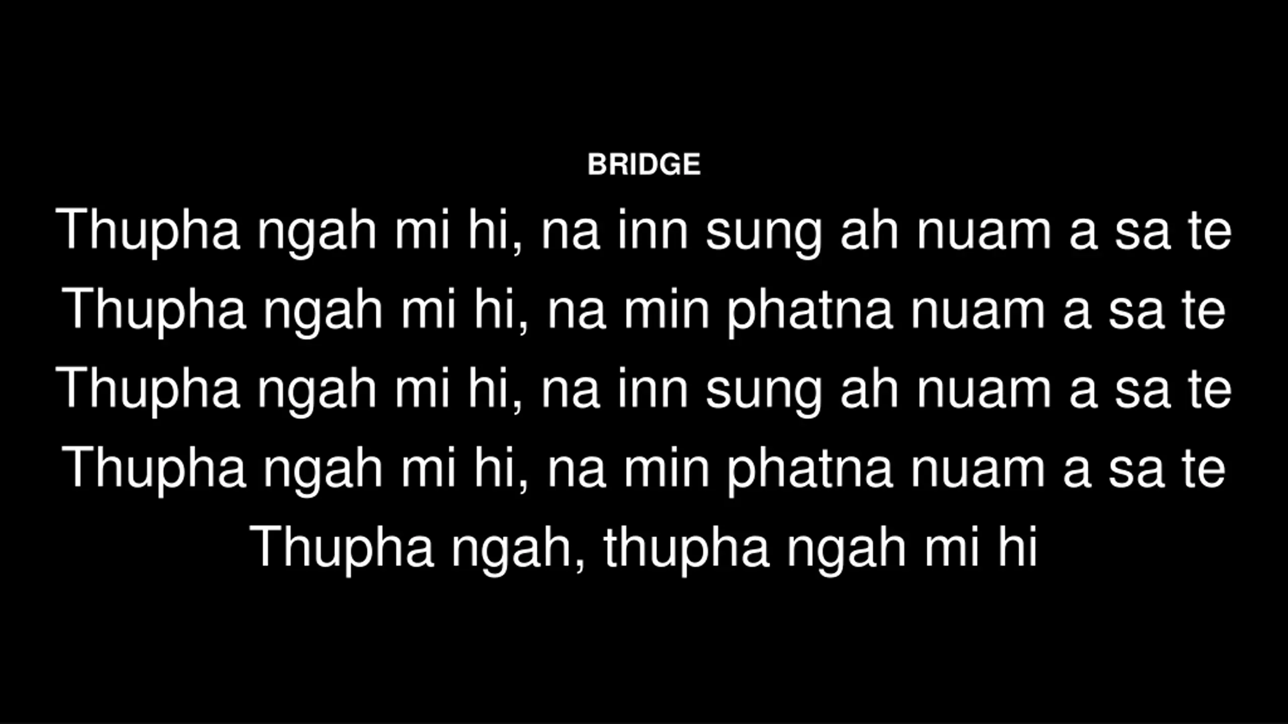 BRIDGE Thupha ngah mi hi, na inn sung ah nuam a sa te Thupha ngah mi hi, na min phatna nuam a sa te Thupha ngah mi hi, na inn sung ah nuam a sa te Thupha ngah mi hi, na min phatna nuam a sa te Thupha ngah, thupha ngah mi hi