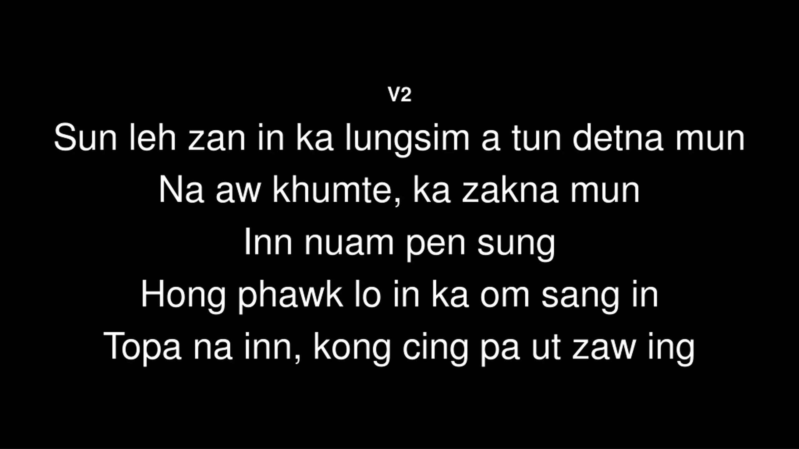 V2 Sun leh zan in ka lungsim a tun detna mun Na aw khumte, ka zakna mun Inn nuam pen sung Hong phawk lo in ka om sang in Topa na inn, kong cing pa ut zaw ing