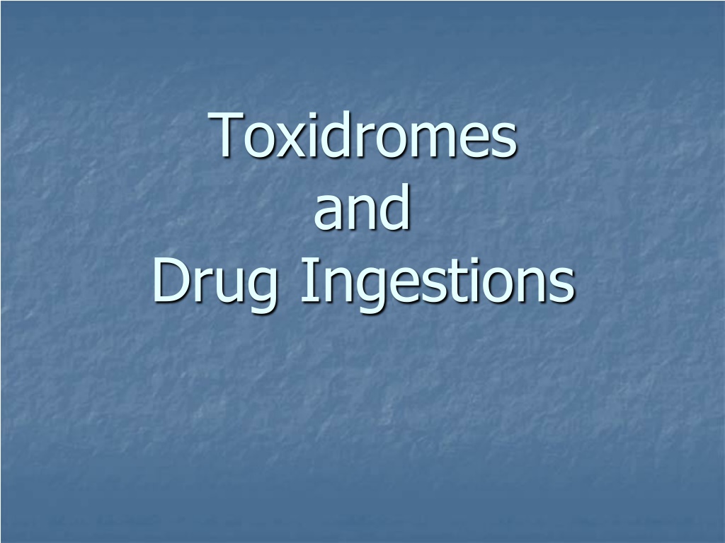 Toxidromes What is a Toxidrome? A constellation of clinical signs that may suggest a particular type of ingestion Toxidromes may indicate what type of drugs a patient has taken if they are unable or unwilling to tell you