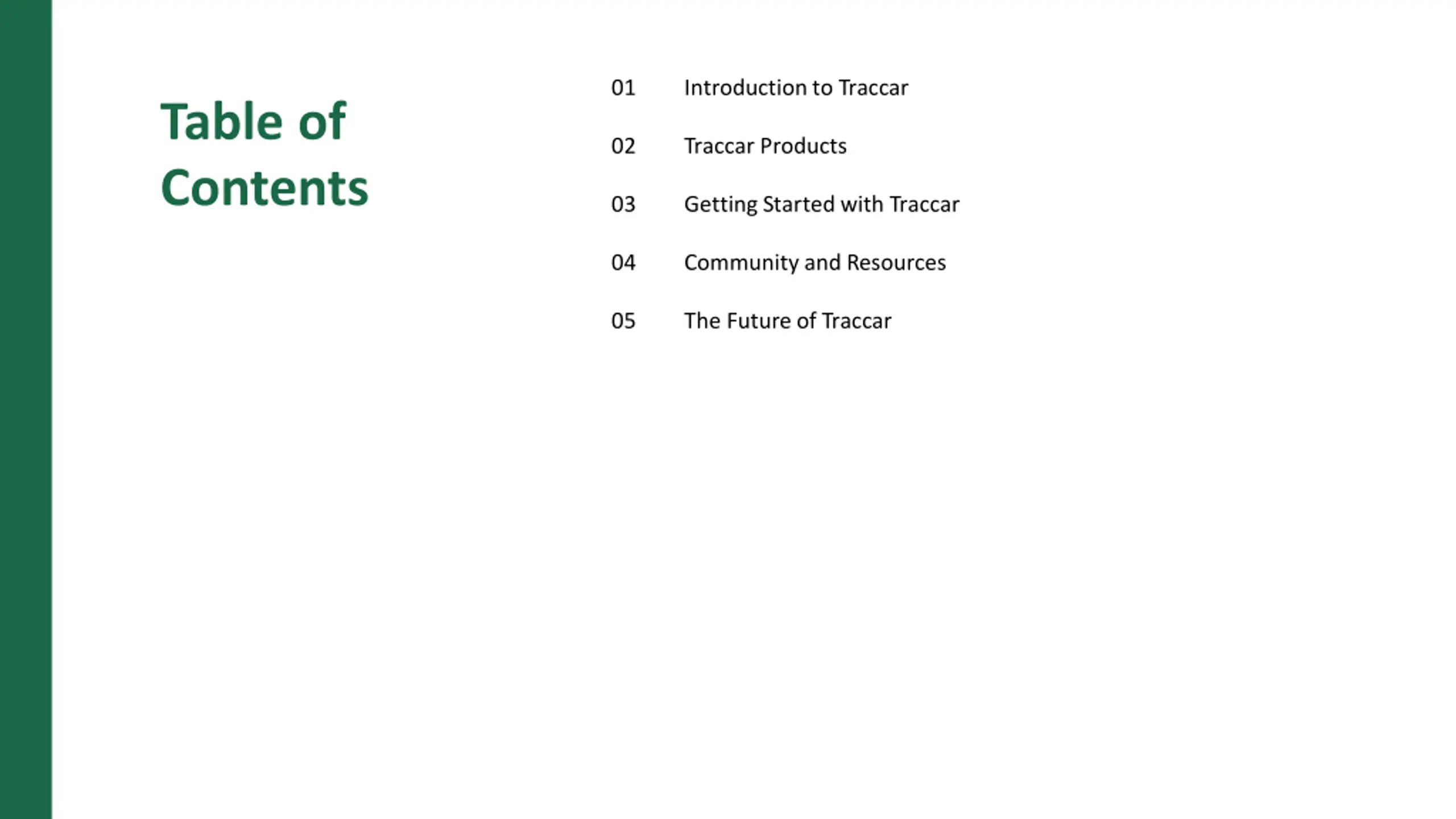 01 Introduction to Traccar Table of Contents 02 Traccar Products 03 Getting Started with Traccar 04 Community and Resources 05 The Future of Traccar