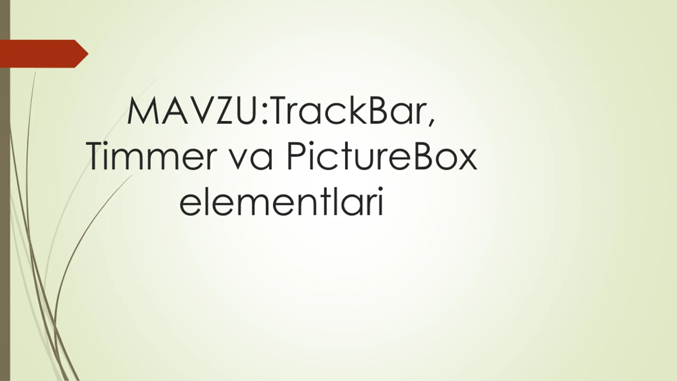MAVZU:TrackBar, Timmer va PictureBox elementlari