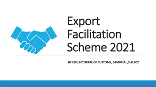 Introduction Trade facilitation and transport facilitation OECD - Specific set of measures that streamline and simplify the technical and legal procedures for products entering or leaving a country to be traded internationally WTO - the simplification and harmonization of international trade procedures with trade procedures being the activities, practices and formalities involved in collecting, presenting, communications and processing data required for the movements of goods in international trade . EU - Trade Facilitation refers to the simplification, harmonisation and automation of international trade procedures, particularly import and export procedures, transit requirements and procedures applied by Customs and other agencies Objectives - Increased speed and efficiency (timeliness and transaction costs) in international trade