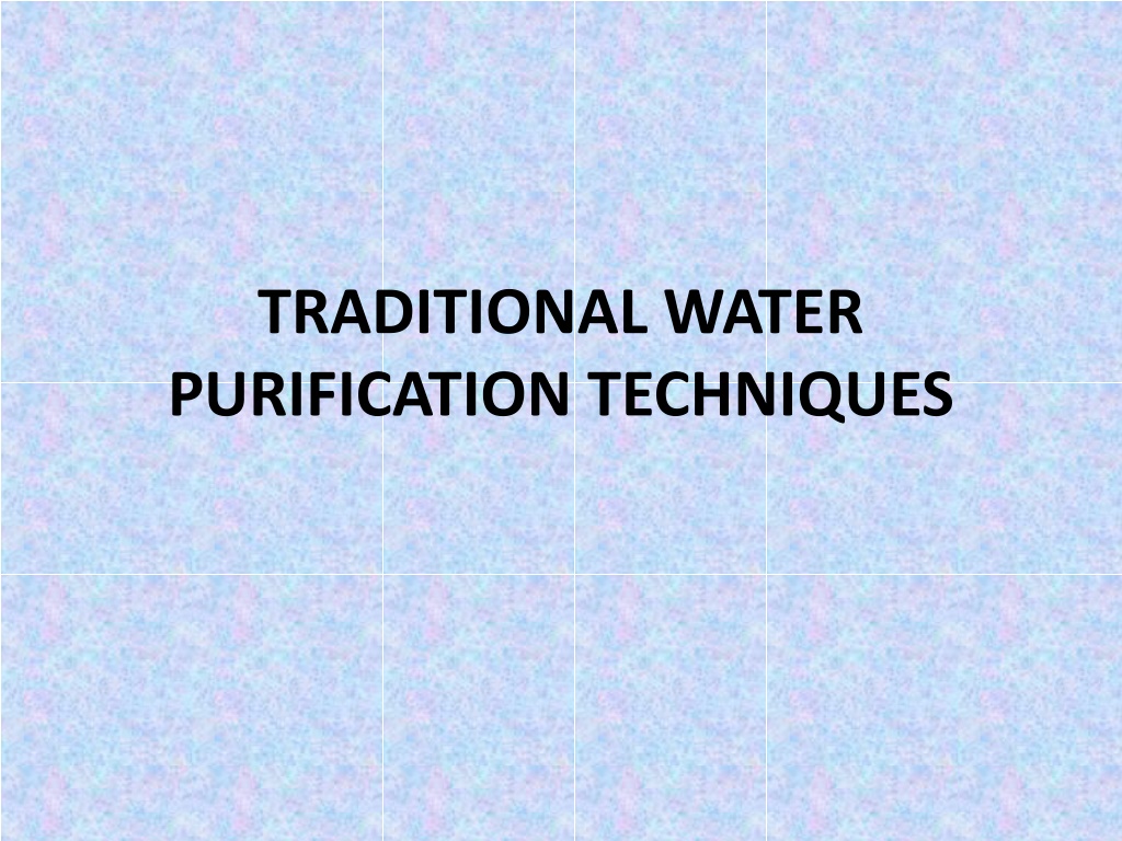 TRADITIONAL WATER PURIFICATION TECHNIQUES