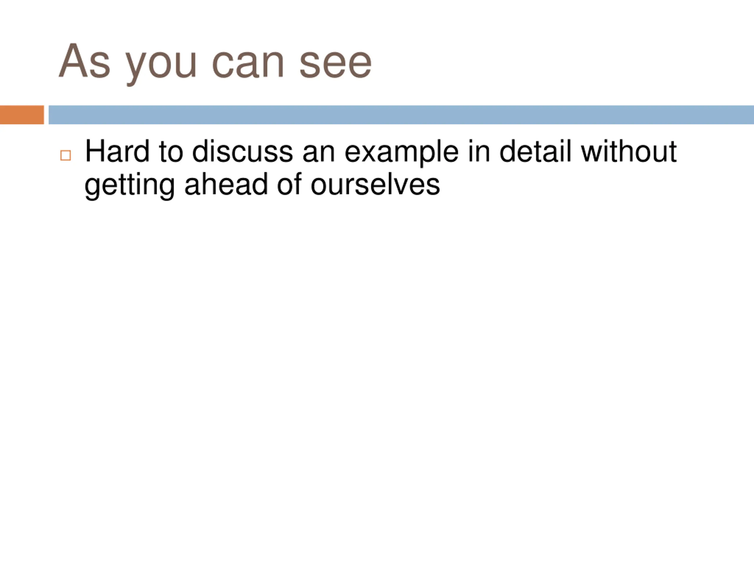 As you can see Hard to discuss an example in detail without getting ahead of ourselves
