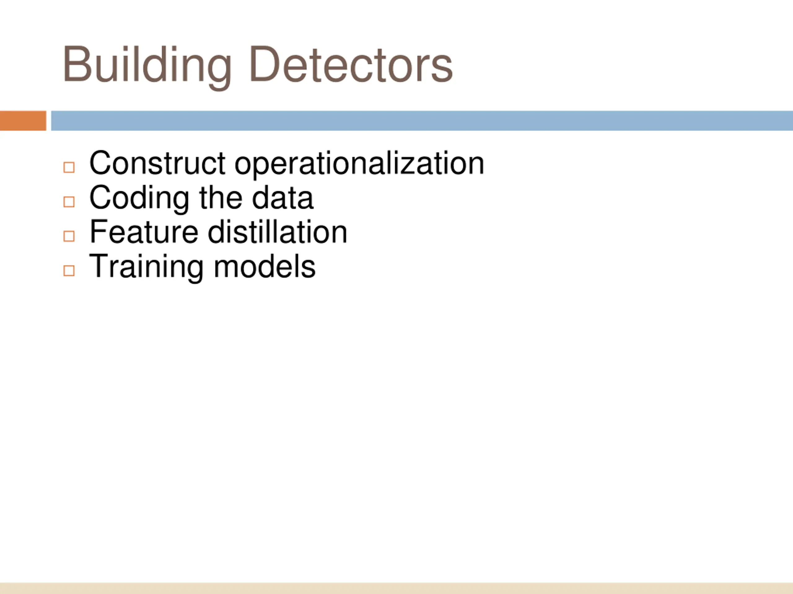 Building Detectors Construct operationalization Coding the data Feature distillation Training models