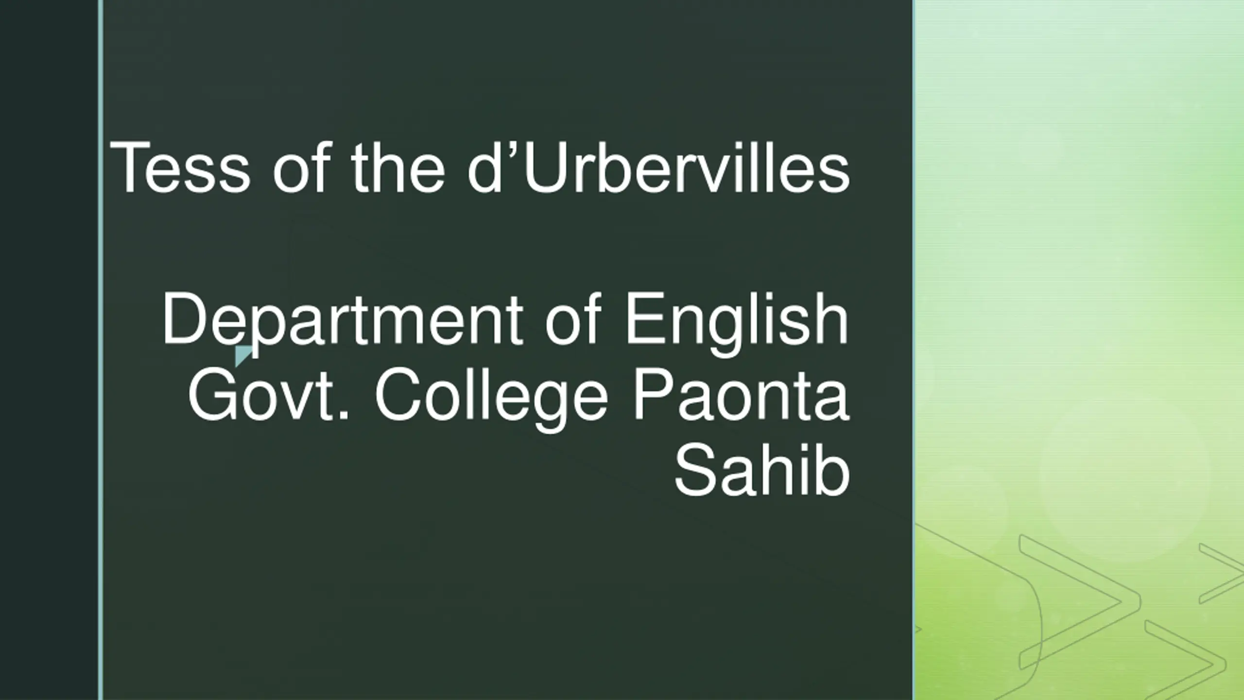 Tess of the dUrbervilles Department of English Govt. College Paonta Sahib