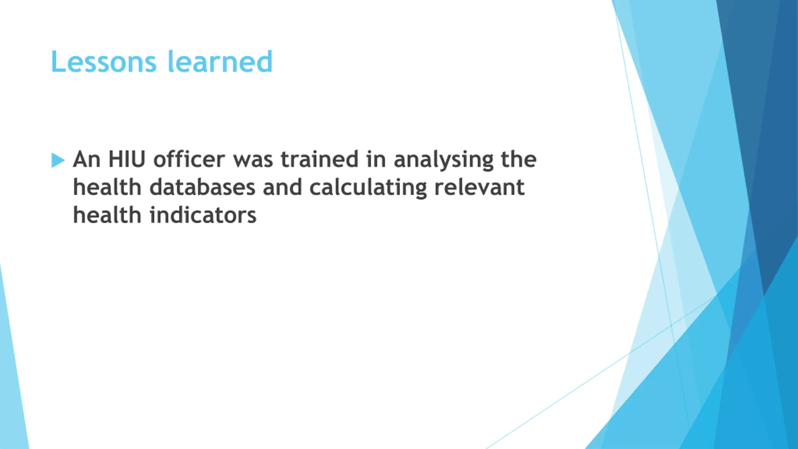 Lessons learned An HIU officer was trained in analysing the health databases and calculating relevant health indicators