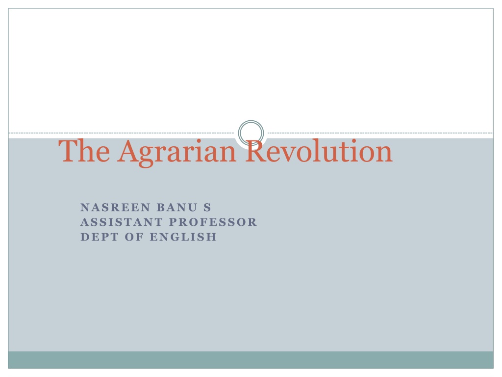 The Agrarian Revolution NASREEN BANU S ASSISTANT PROFESSOR DEPT OF ENGLISH