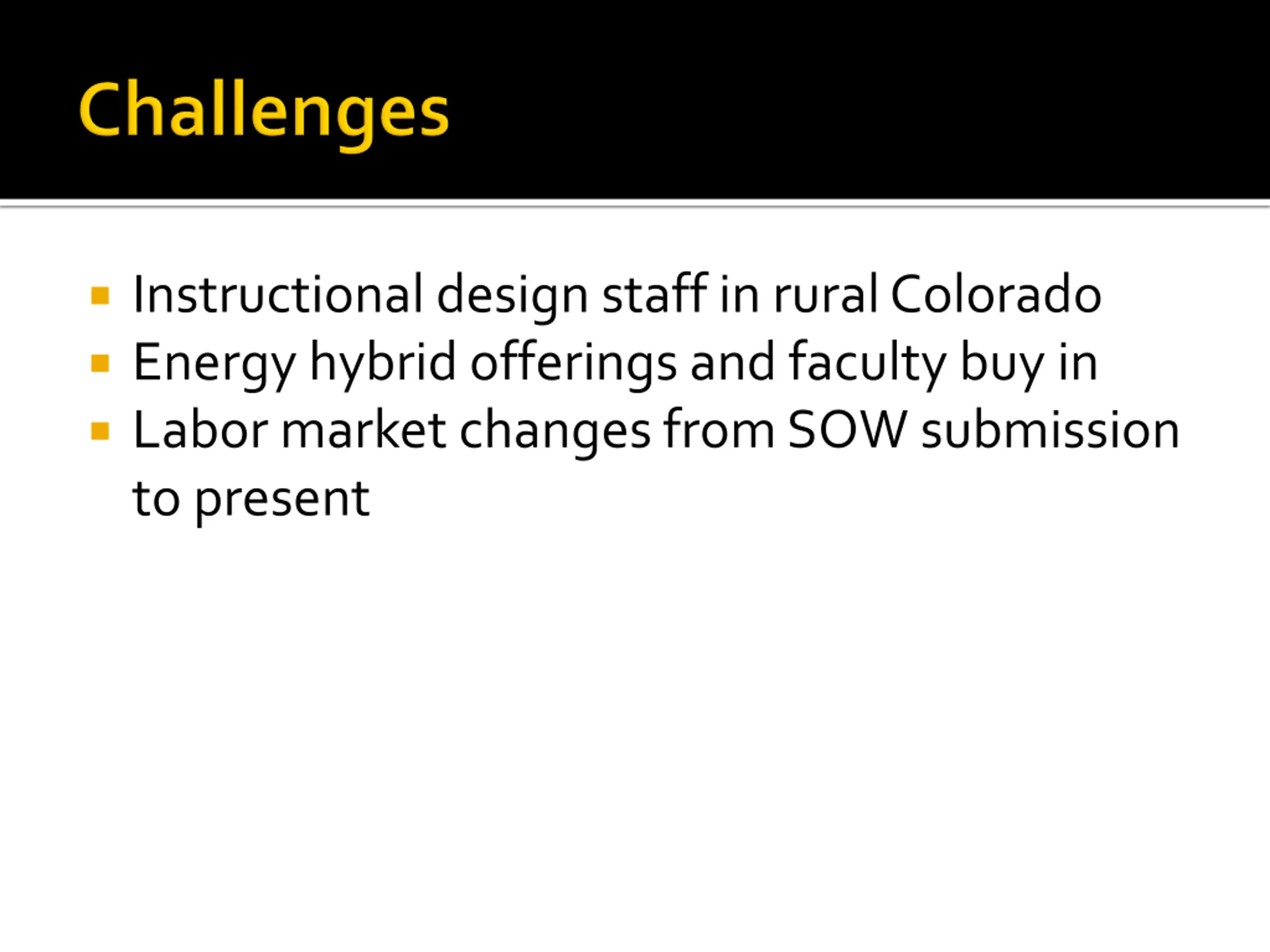 Instructional design staff in rural Colorado Energy hybrid offerings and faculty buy in Labor market changes from SOW submission to present
