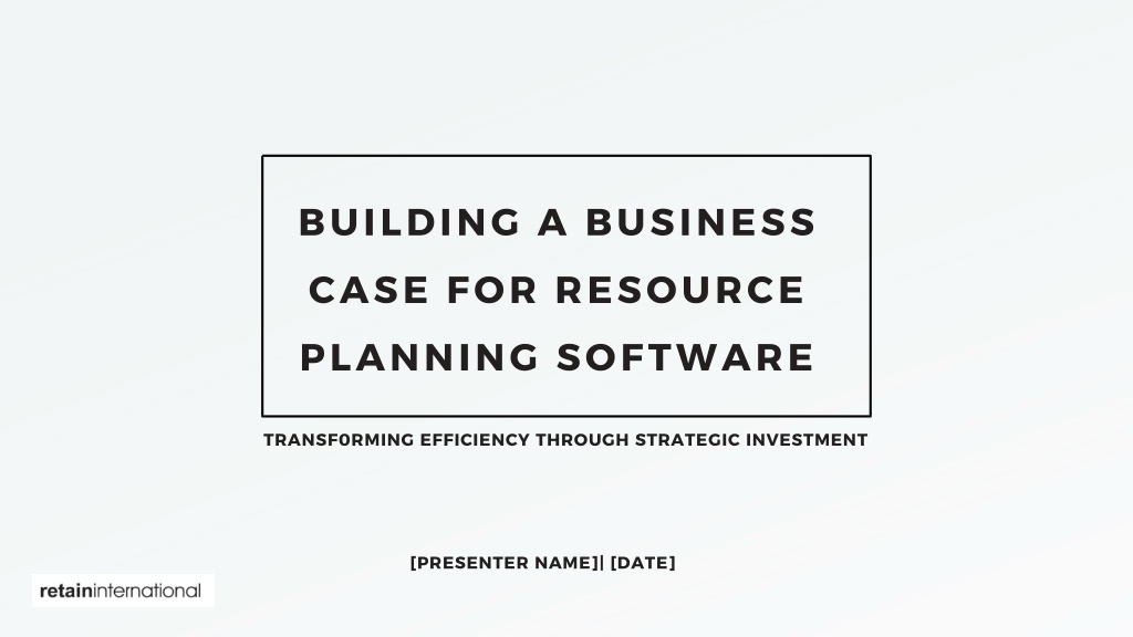 BUILDING A BUSINESS CASE FOR RESOURCE PLANNING SOFTWARE TRANSF0RMING EFFICIENCY THROUGH STRATEGIC INVESTMENT [PRESENTER NAME]| [DATE]