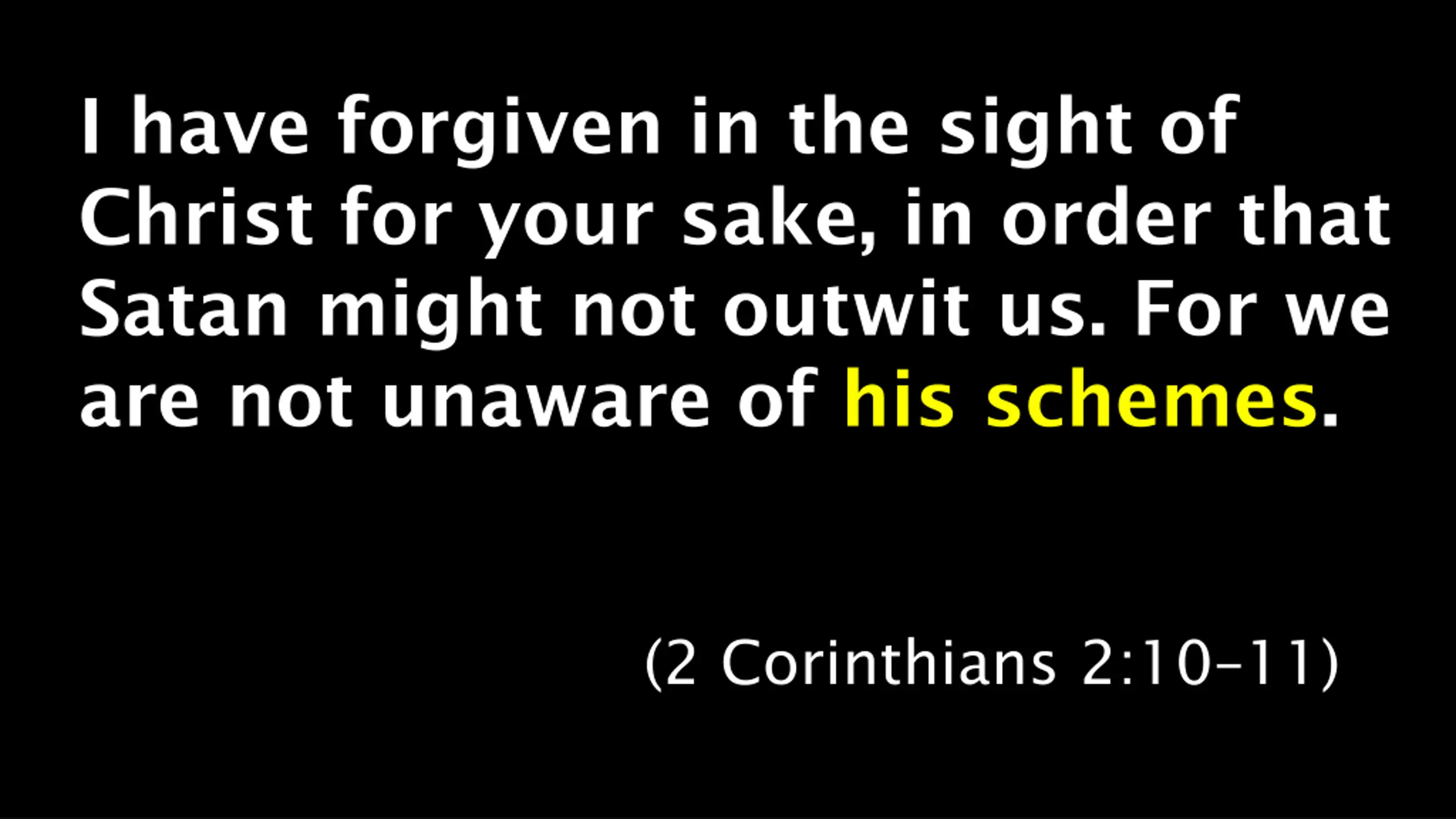 I have forgiven in the sight of Christ for your sake, in order that Satan might not outwit us. For we are not unaware of his schemes. (2 Corinthians 2:10 11)