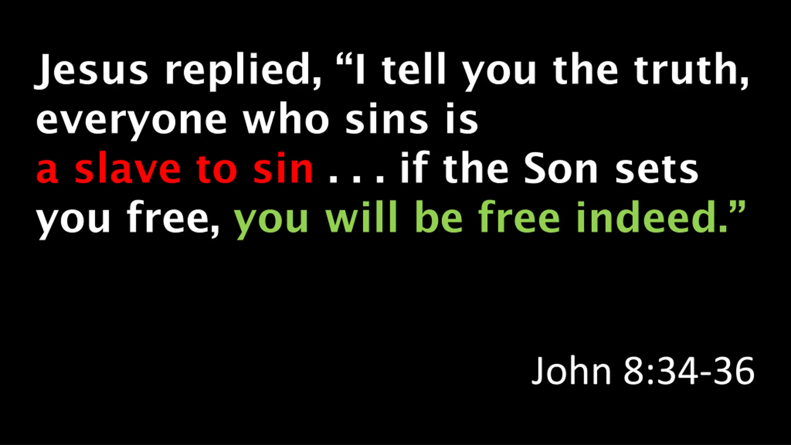 Jesus replied, I tell you the truth, everyone who sins is a slave to sin . . . if the Son sets you free, you will be free indeed. John 8:34-36