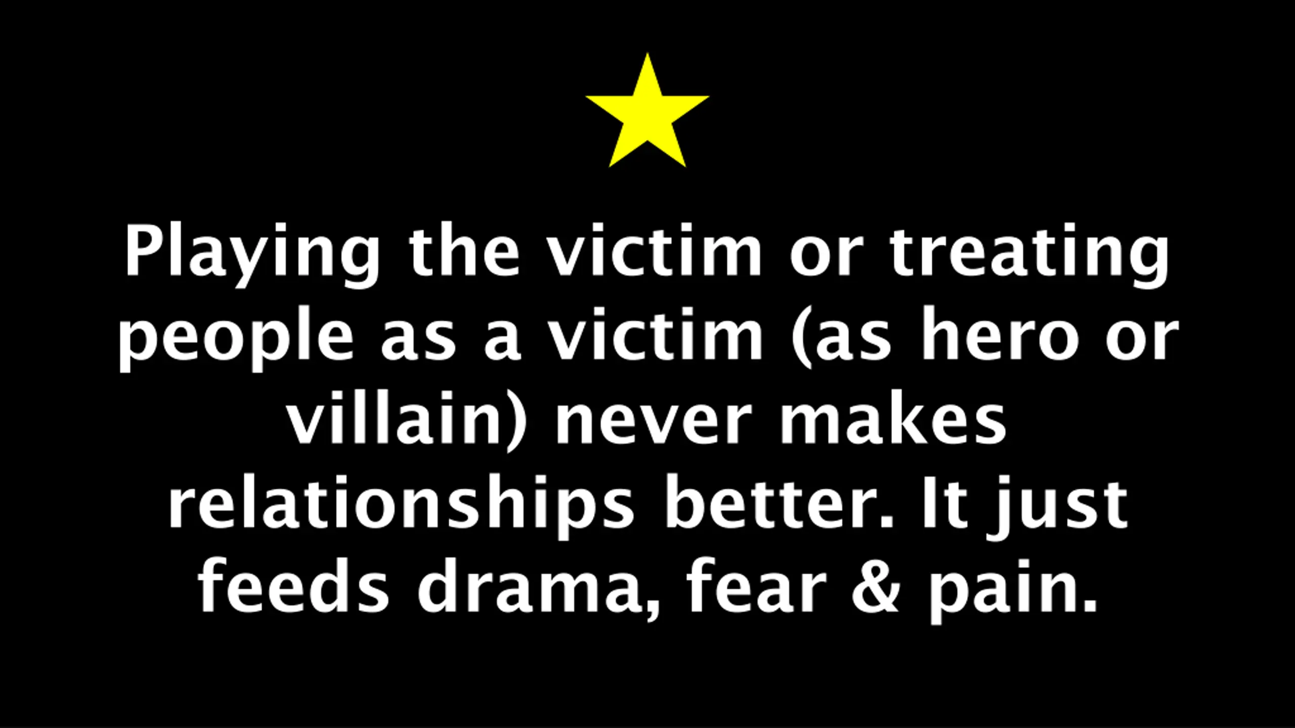 Playing the victim or treating people as a victim (as hero or villain) never makes relationships better. It just feeds drama, fear & pain.