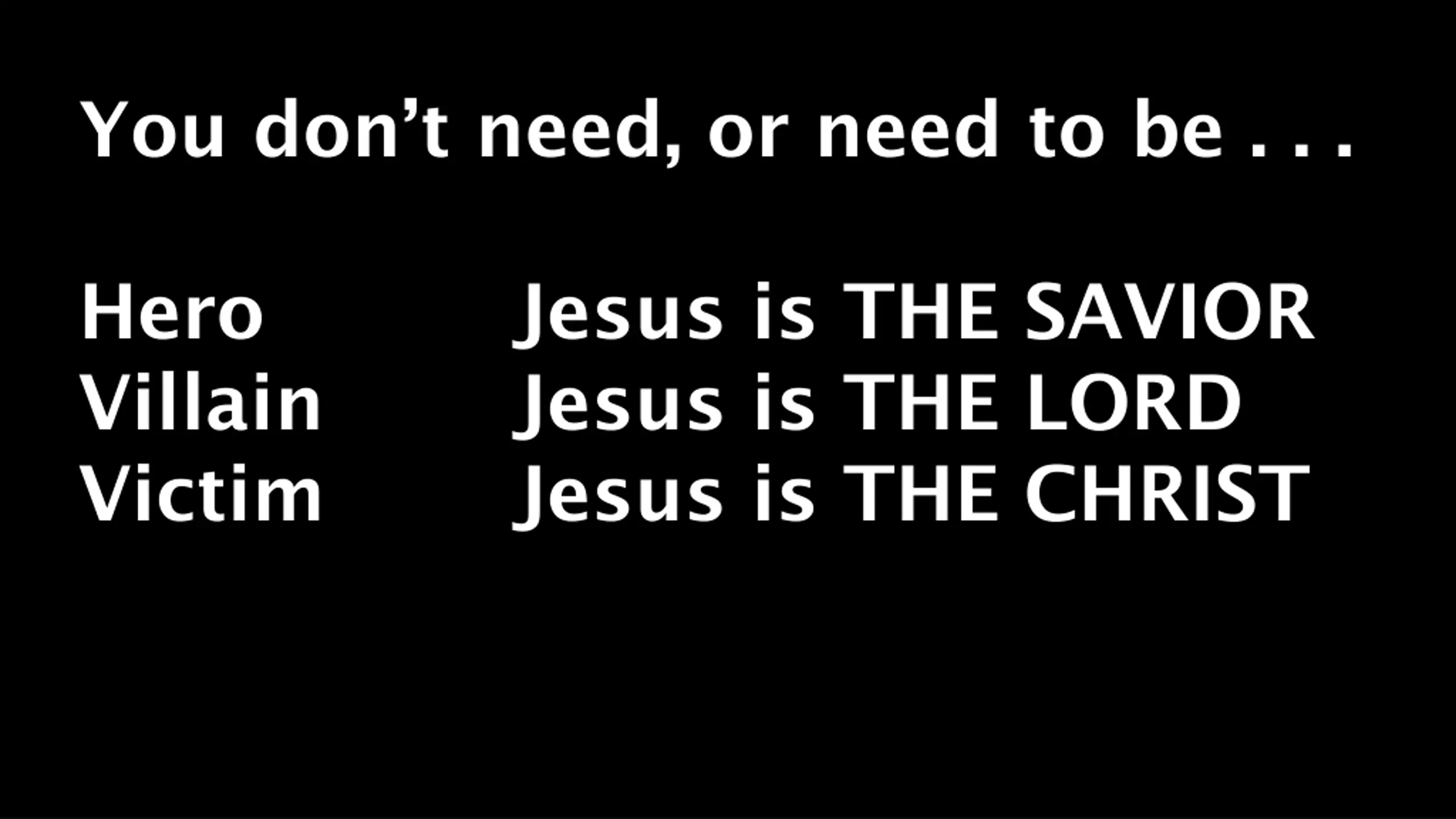 You dont need, or need to be . . . Hero Villain Victim Jesus is THE SAVIOR Jesus is THE LORD Jesus is THE CHRIST