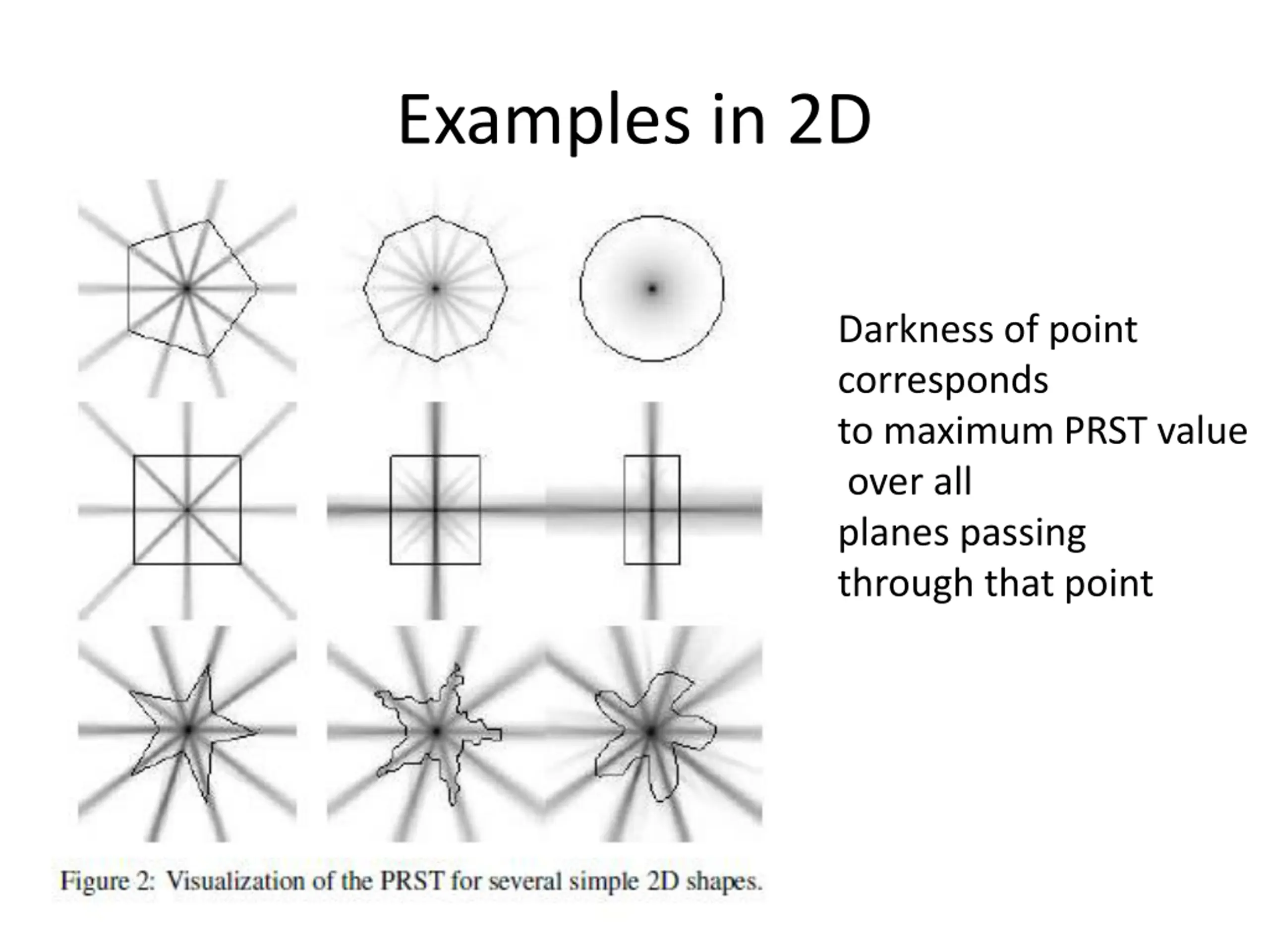 Examples in 2D Darkness of point corresponds to maximum PRST value over all planes passing through that point
