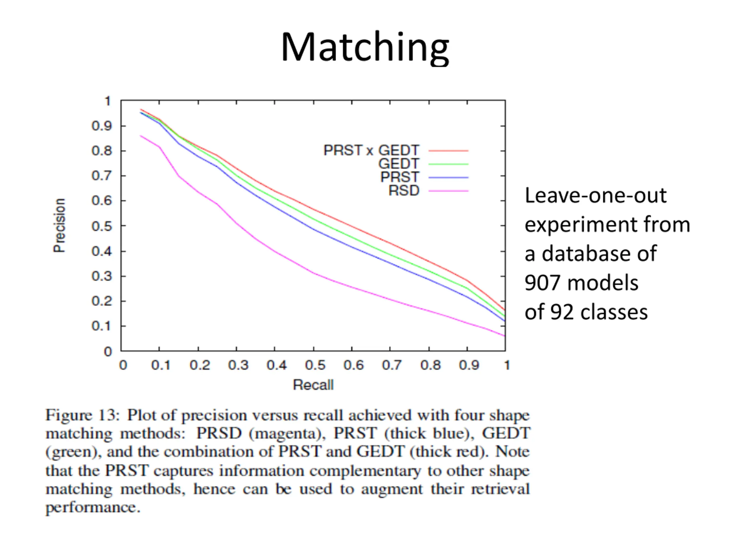 Matching Leave-one-out experiment from a database of 907 models of 92 classes