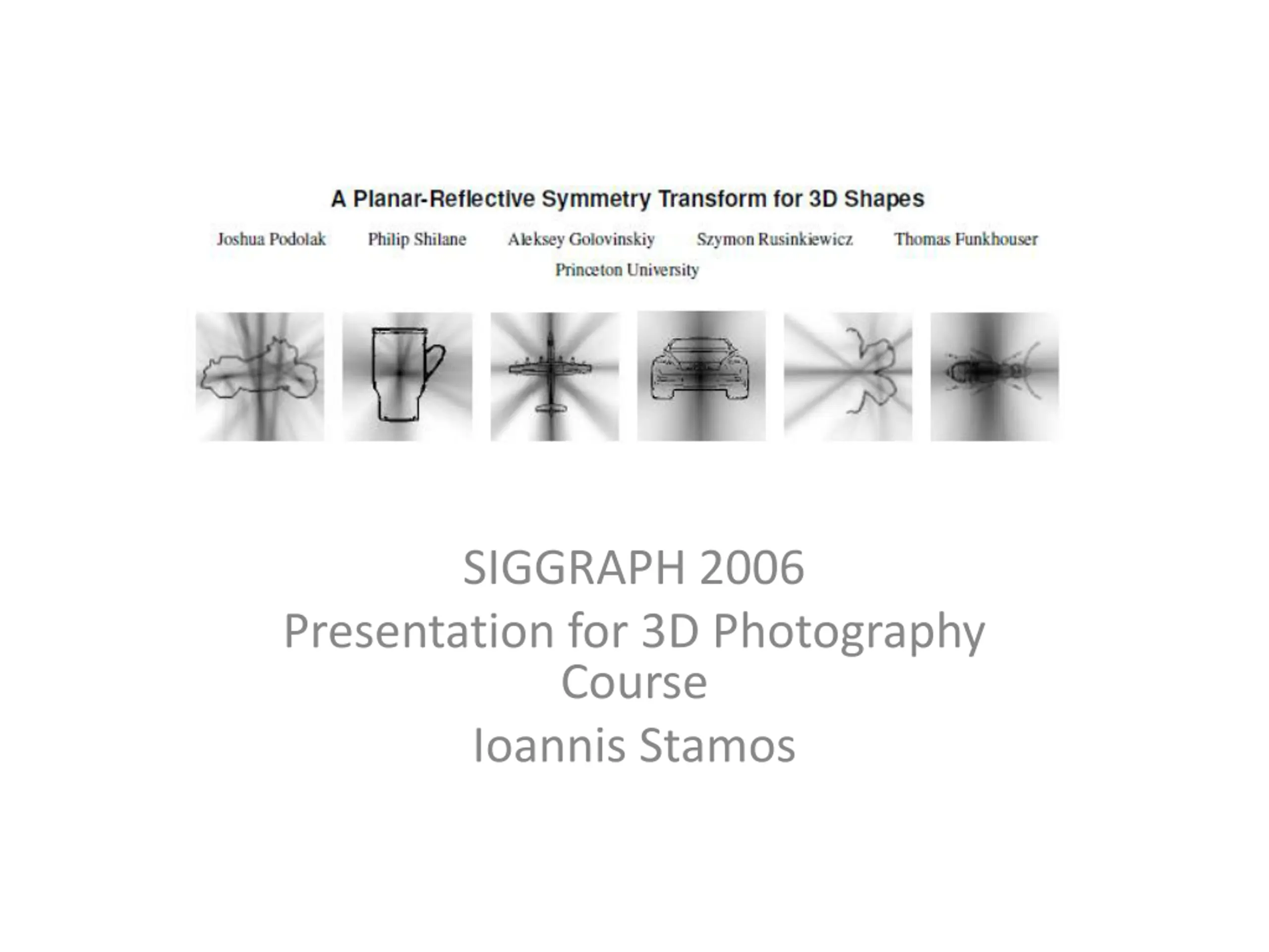 SIGGRAPH 2006 Presentation for 3D Photography Course Ioannis Stamos