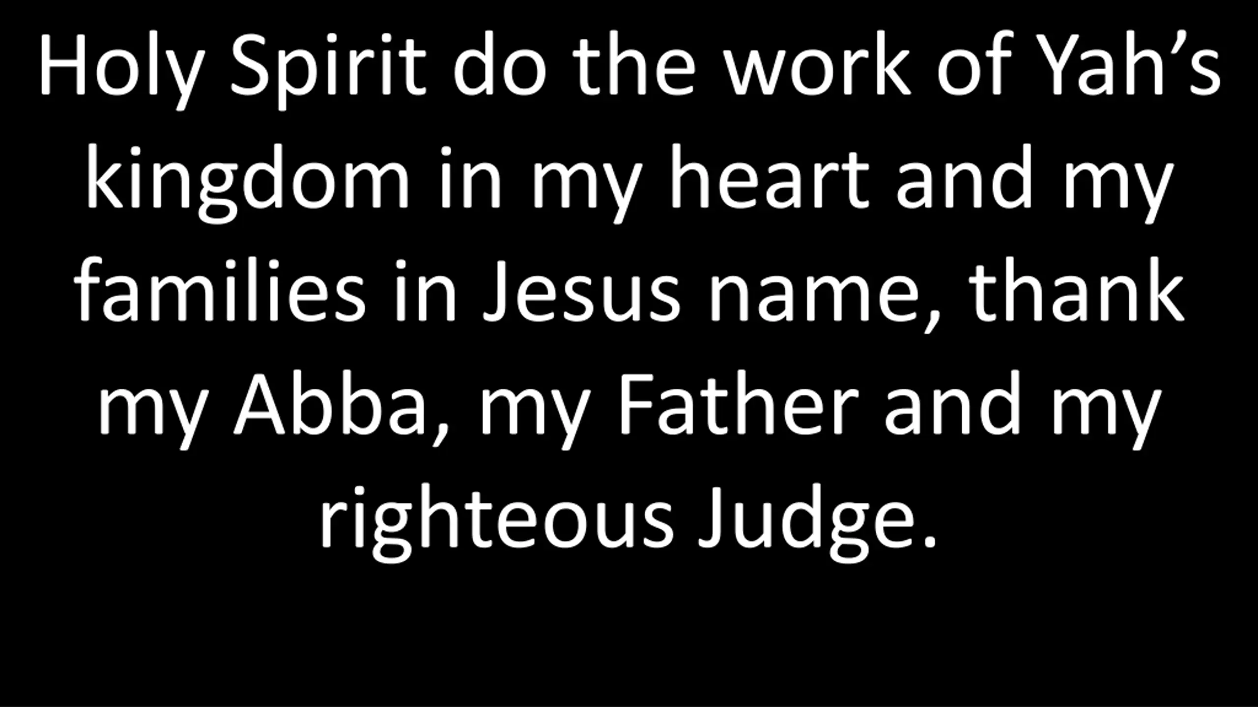 Holy Spirit do the work of Yahs kingdom in my heart and my families in Jesus name, thank my Abba, my Father and my righteous Judge.