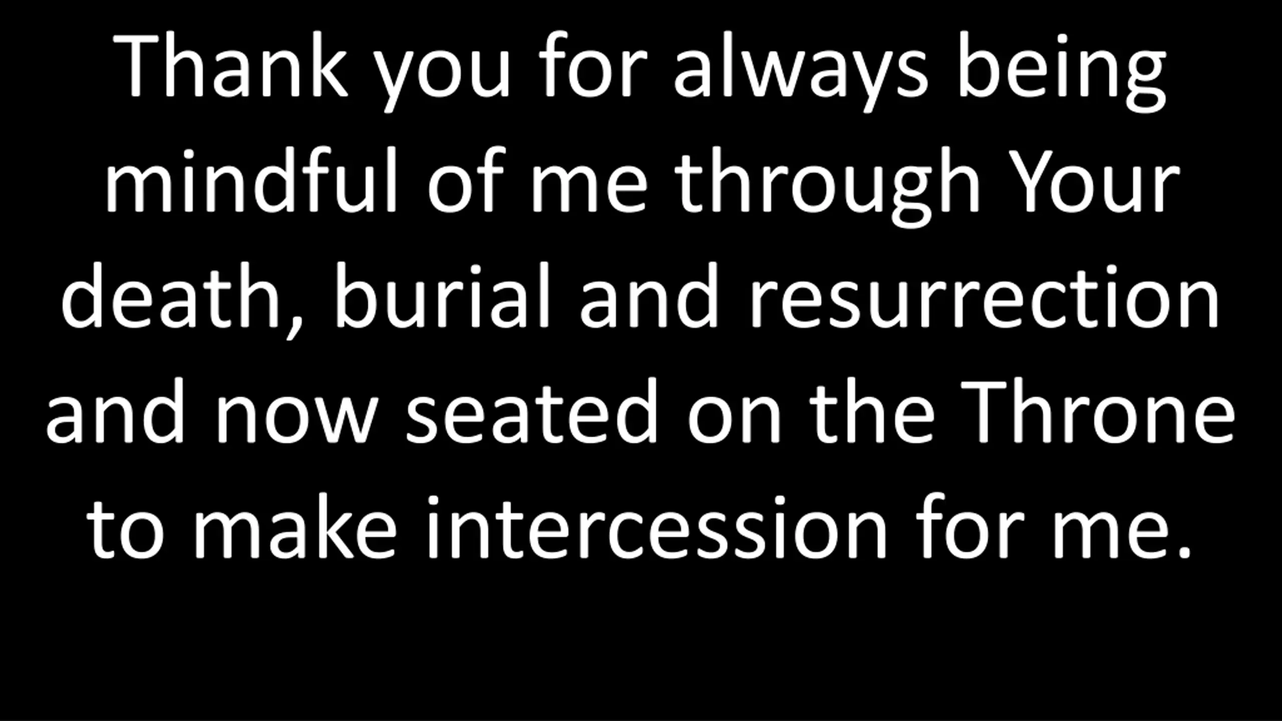 Thank you for always being mindful of me through Your death, burial and resurrection and now seated on the Throne to make intercession for me.