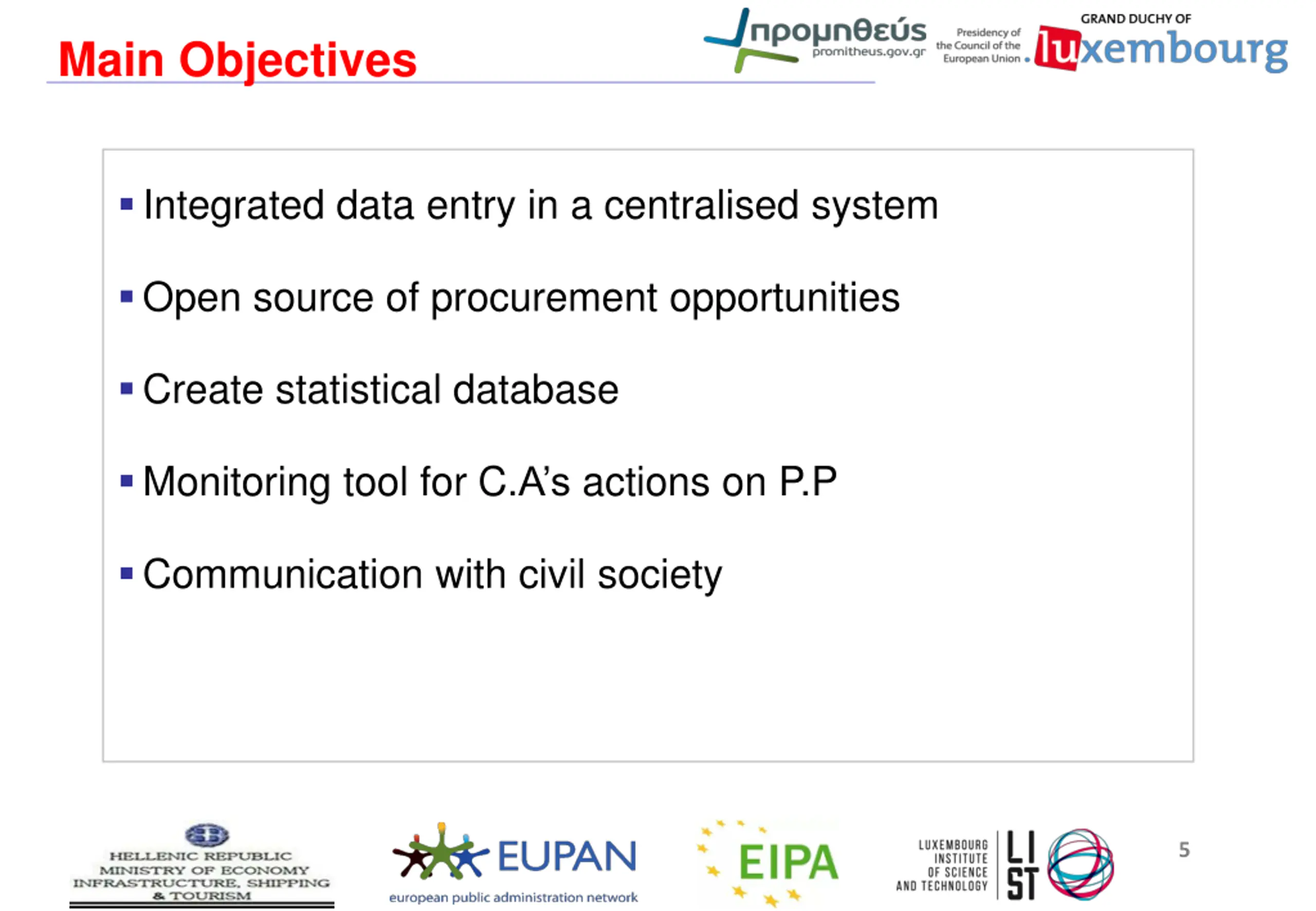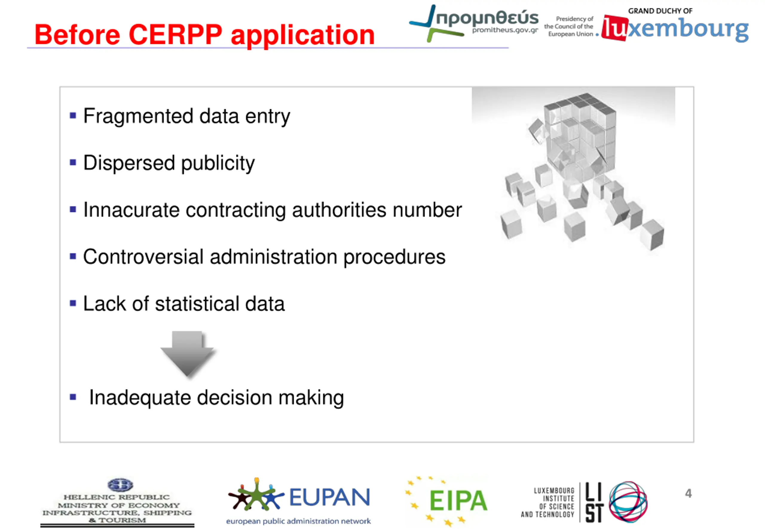 Before CERPP application Fragmented data entry Dispersed publicity Innacurate contracting authorities number Controversial administration procedures Lack of statistical data Inadequate decision making 4