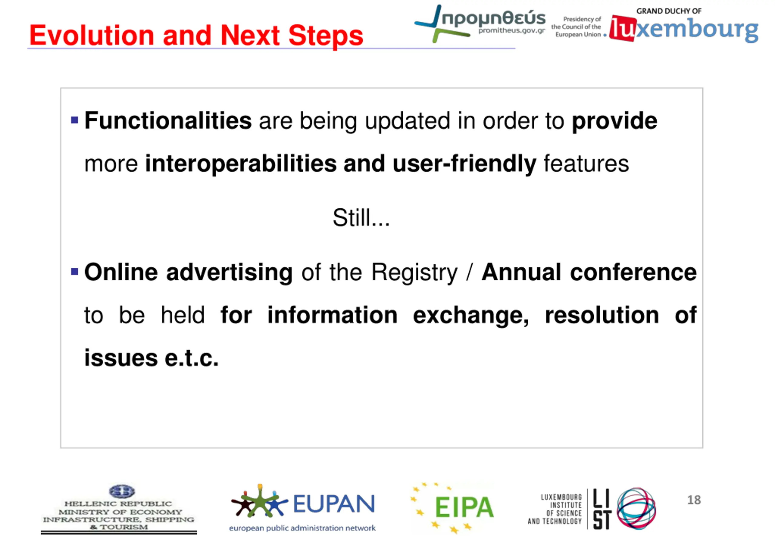 Evolution and Next Steps Functionalities are being updated in order to provide more interoperabilities and user-friendly features Still... Online advertising of the Registry / Annual conference to be held for information exchange, resolution of issues e.t.c. 18