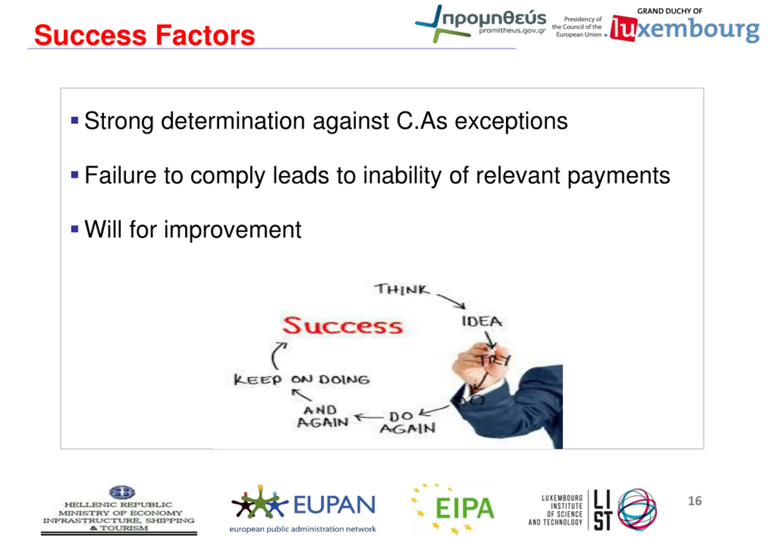 Success Factors Strong determination against C.As exceptions Failure to comply leads to inability of relevant payments Will for improvement 16