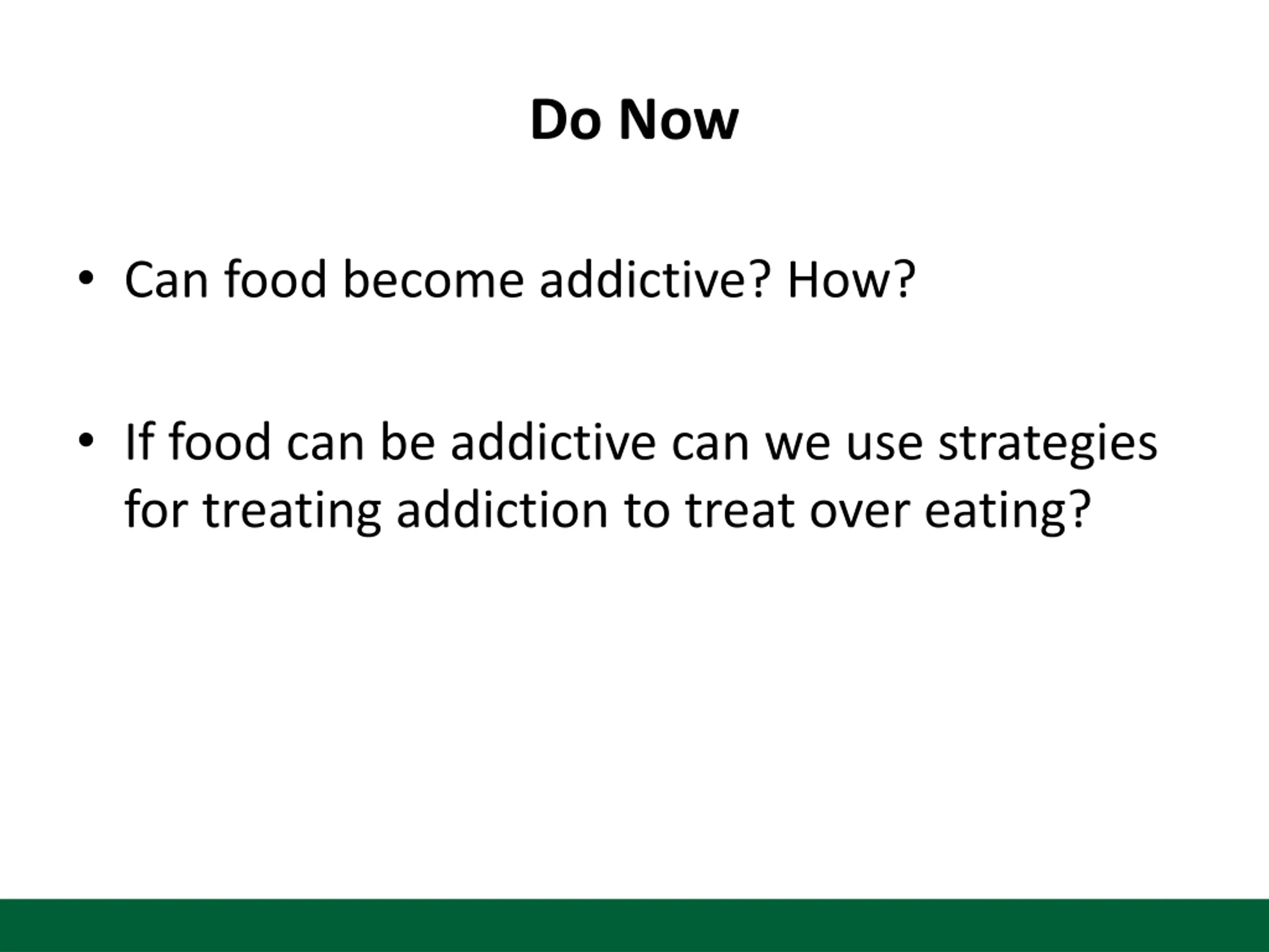 Do Now Can food become addictive? How? If food can be addictive can we use strategies for treating addiction to treat over eating?