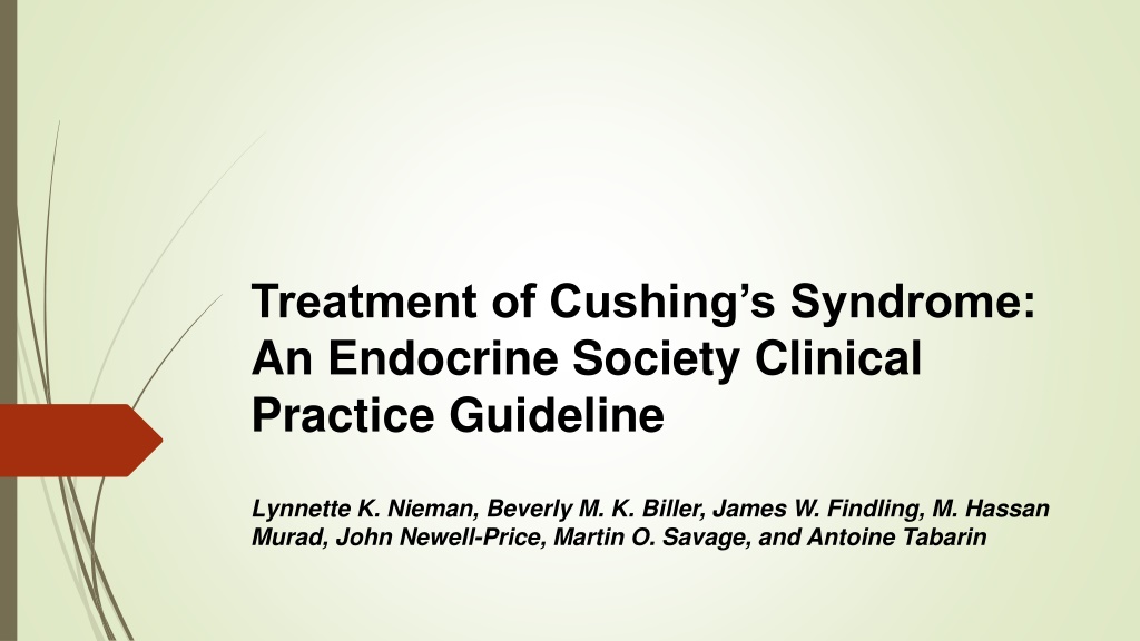 Treatment of Cushings Syndrome: An Endocrine Society Clinical Practice Guideline Lynnette K. Nieman, Beverly M. K. Biller, James W. Findling, M. Hassan Murad, John Newell-Price, Martin O. Savage, and Antoine Tabarin