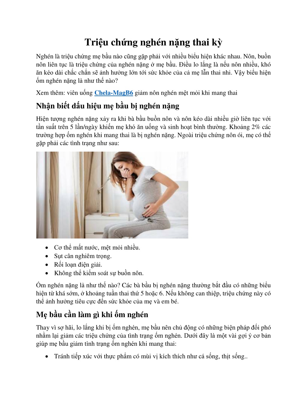 Triệu chứng nghén nặng thai kỳ