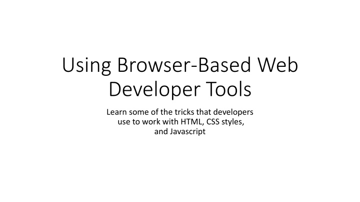 Using Browser-Based Web Developer Tools Learn some of the tricks that developers use to work with HTML, CSS styles, and Javascript
