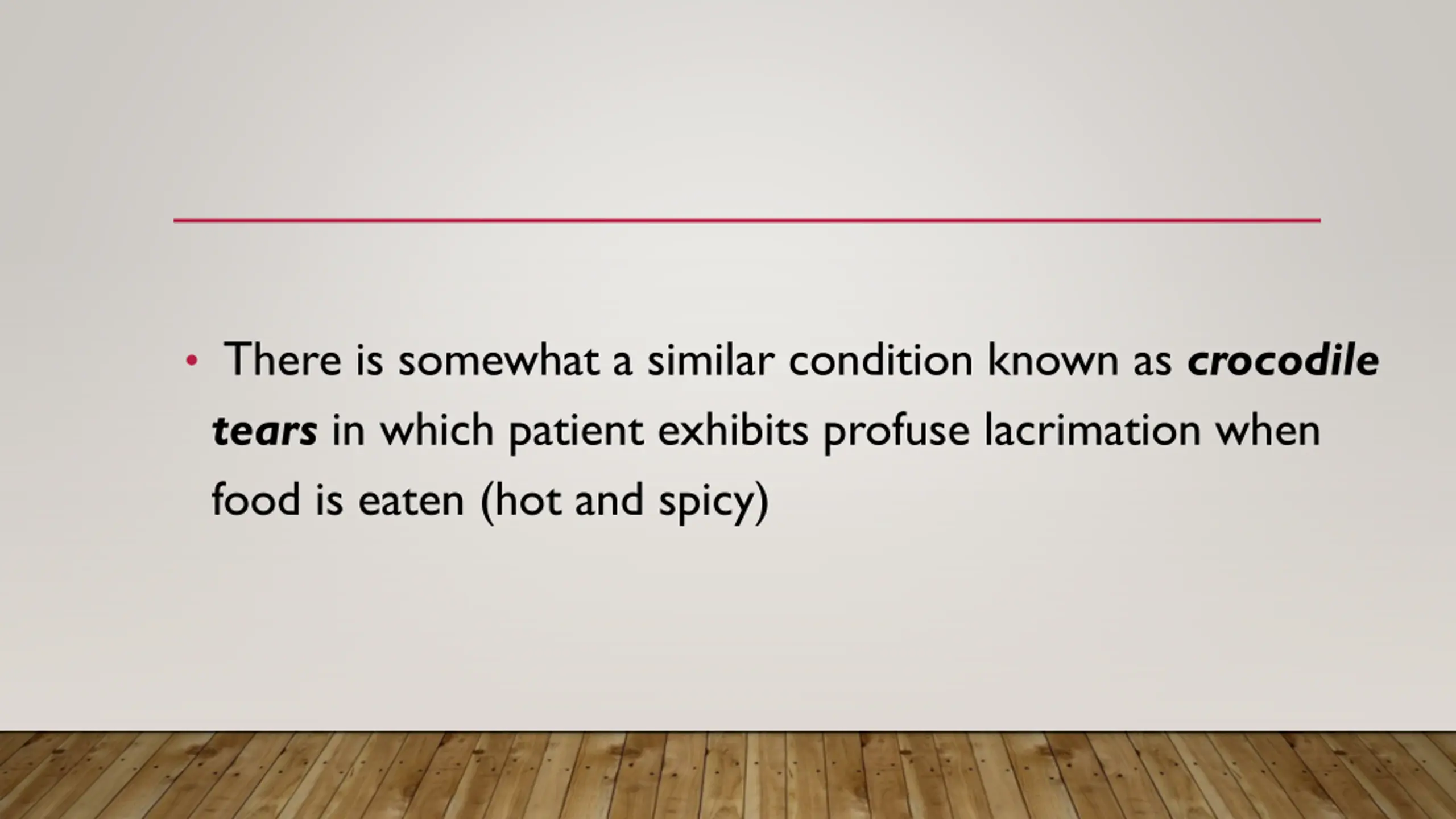 There is somewhat a similar condition known as crocodile tears in which patient exhibits profuse lacrimation when food is eaten (hot and spicy)