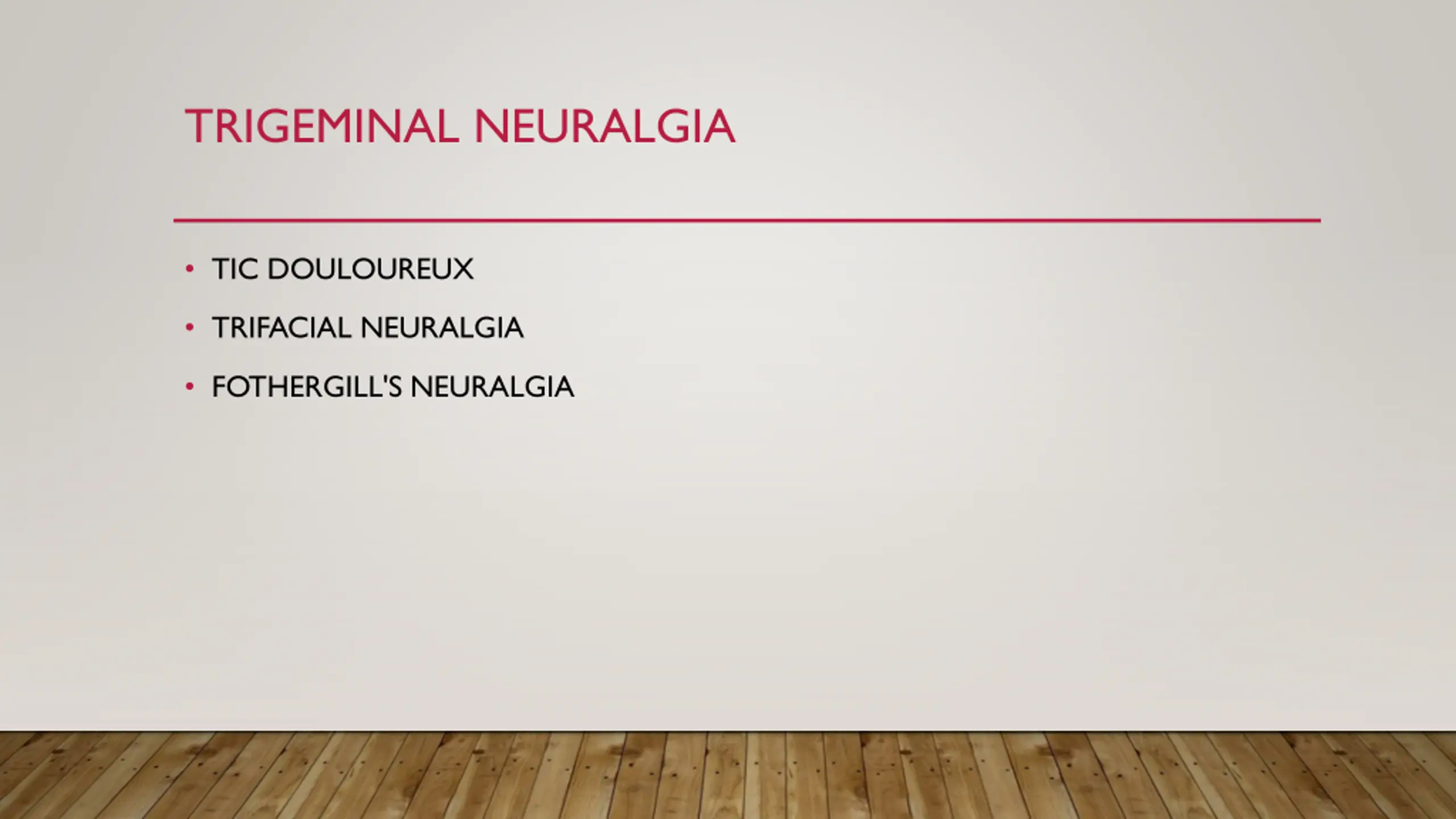 TRIGEMINAL NEURALGIA TIC DOULOUREUX TRIFACIAL NEURALGIA FOTHERGILL'S NEURALGIA