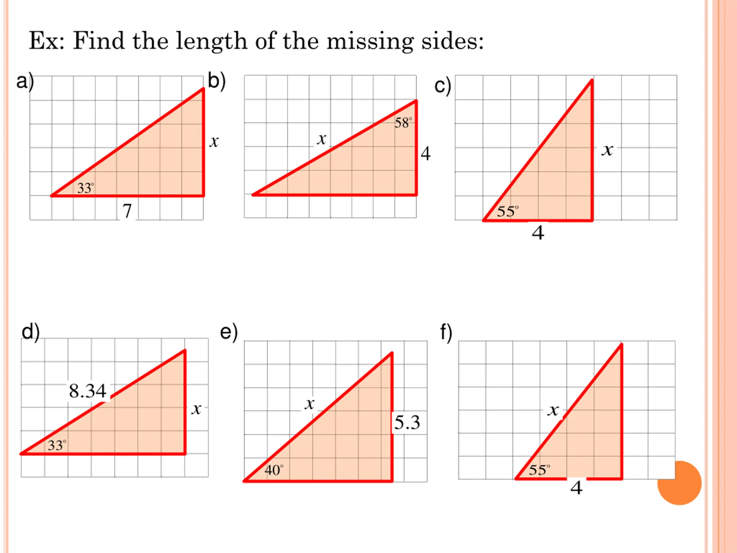 Ex: Find the length of the missing sides: b) a) c) 58 x x x 4 33 7 55 4 d) e) f) 8.34 x x x 5.3 33 40 55 4