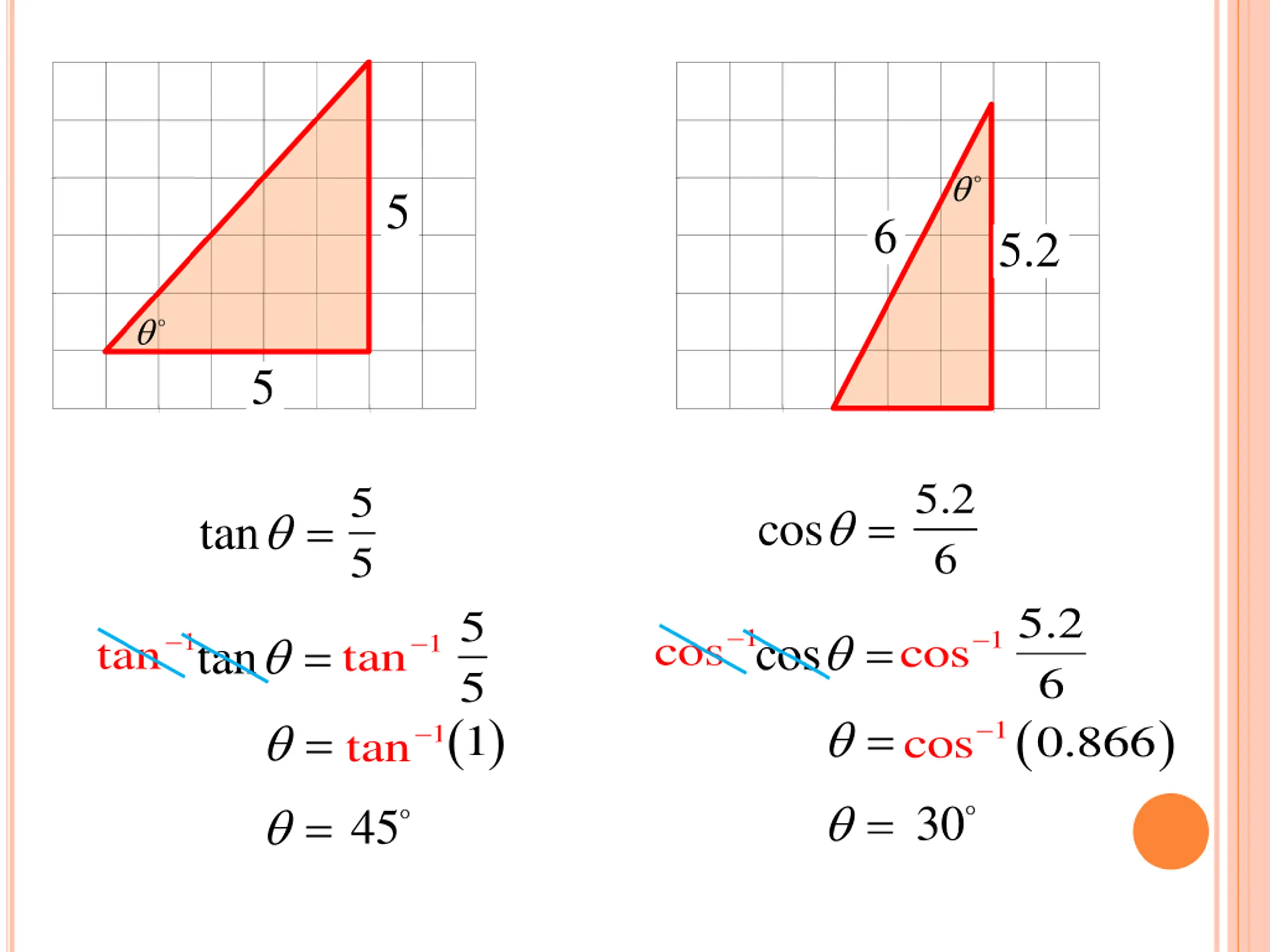 5 6 5.2 5 cos =5.2 tan =5 6 5 5.2 6 0.866 5 5 cos = cos cos 1 tan = tan 1 tan tan ( ) 1 1 1 cos ( ) = = 30 = = 45 1 1