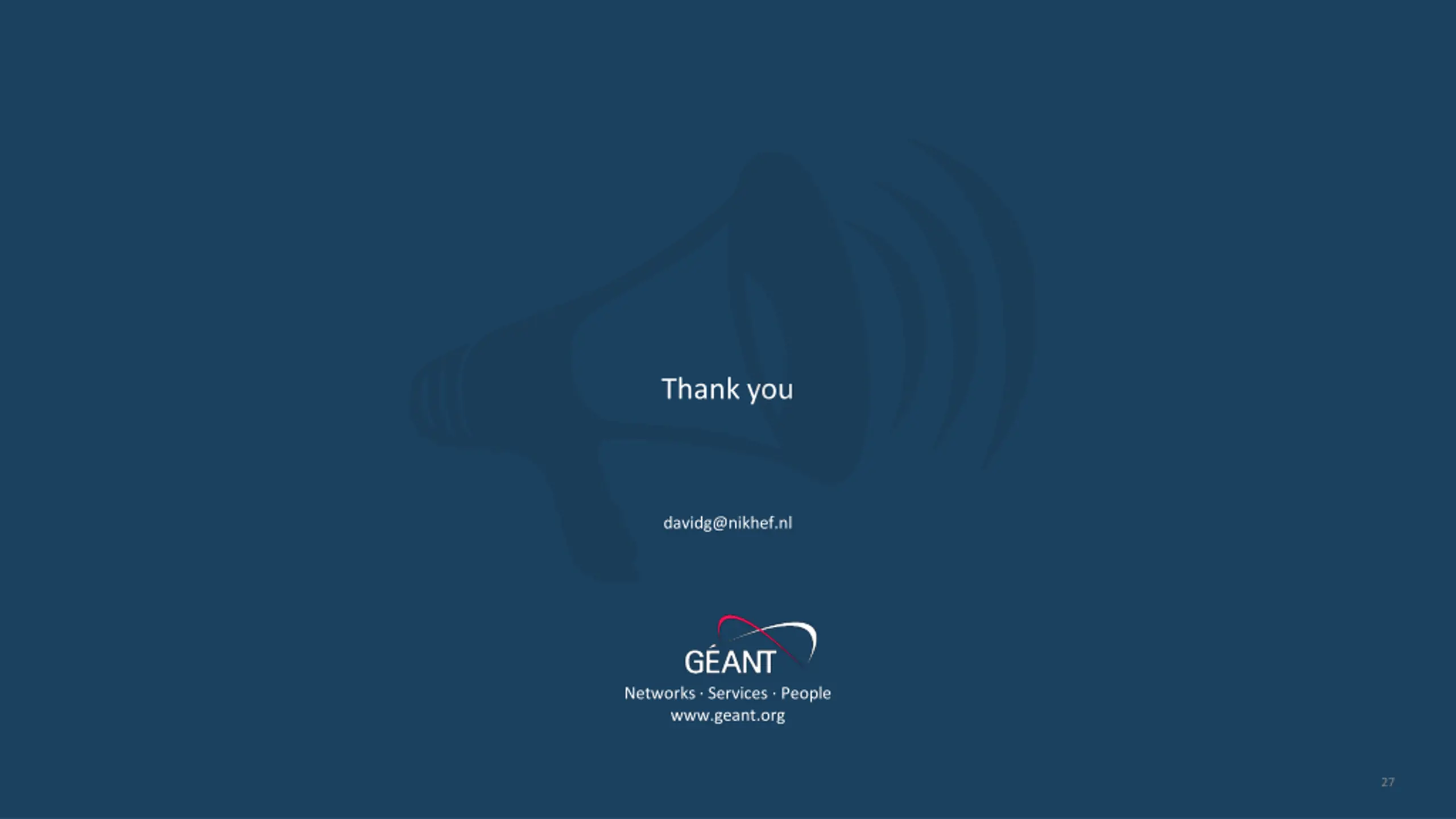 Thank you davidg@nikhef.nl Networks Services People www.geant.org 27 Networks Services People www.geant.org