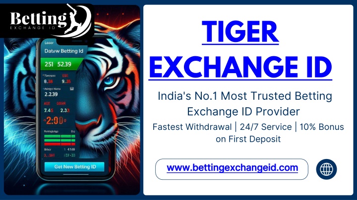 TIGER EXCHANGE ID India's No.1 Most Trusted Betting Exchange ID Provider Fastest Withdrawal | 24/7 Service | 10% Bonus on First Deposit www.bettingexchangeid.com www.bettingexchangeid.com
