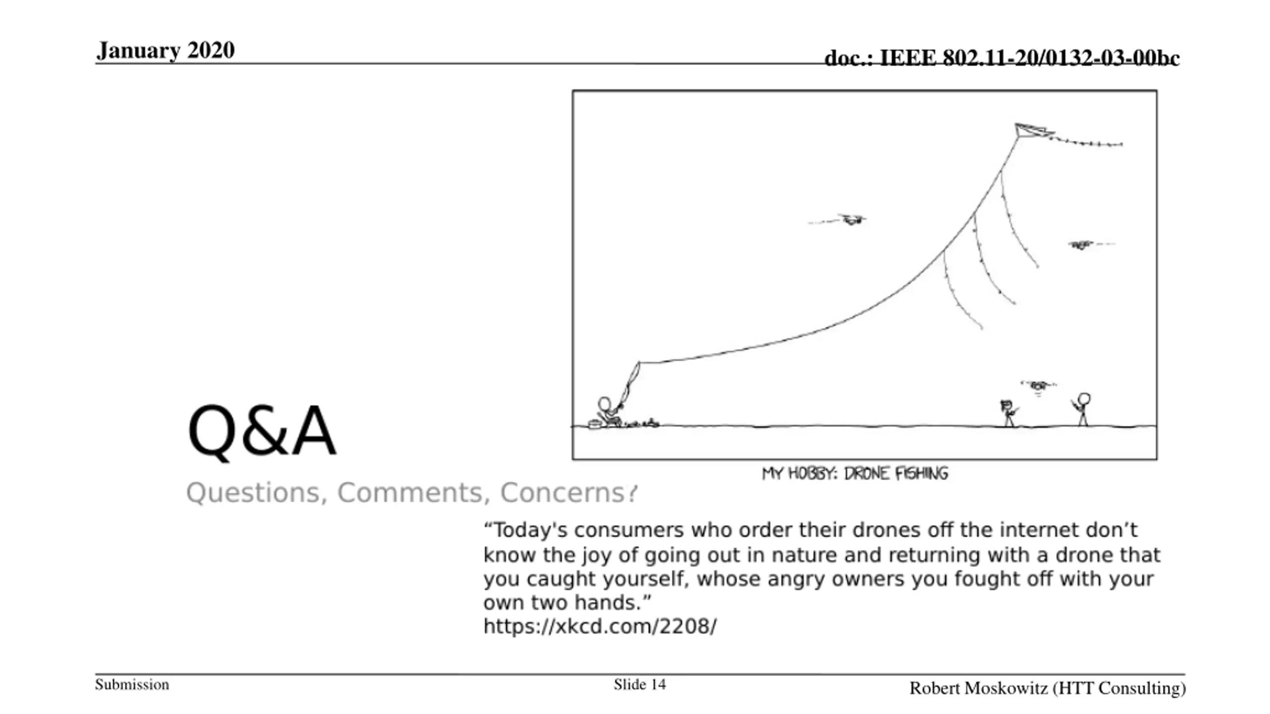 January 2020 doc.: IEEE 802.11-20/0132-03-00bc Submission Slide 14 Robert Moskowitz (HTT Consulting)