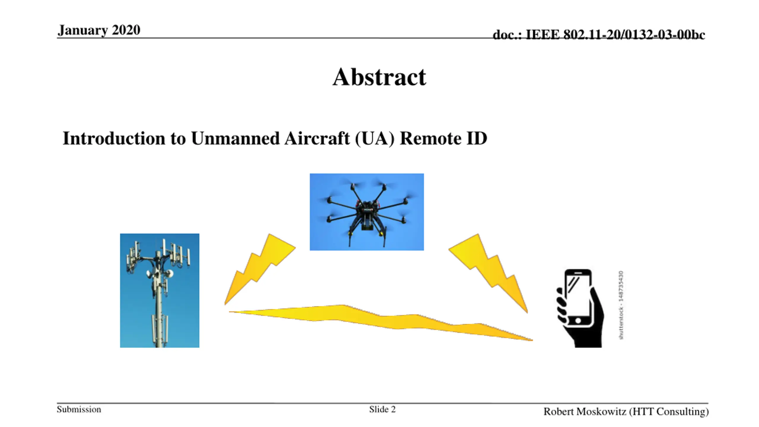 January 2020 doc.: IEEE 802.11-20/0132-03-00bc Abstract Introduction to Unmanned Aircraft (UA) Remote ID Submission Slide 2 Robert Moskowitz (HTT Consulting)