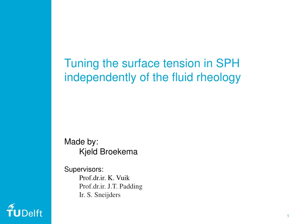 Tuning the surface tension in SPH independently of the fluid rheology Made by: Kjeld Broekema Supervisors: Prof.dr.ir. K. Vuik Prof.dr.ir. J.T. Padding Ir. S. Sneijders 1
