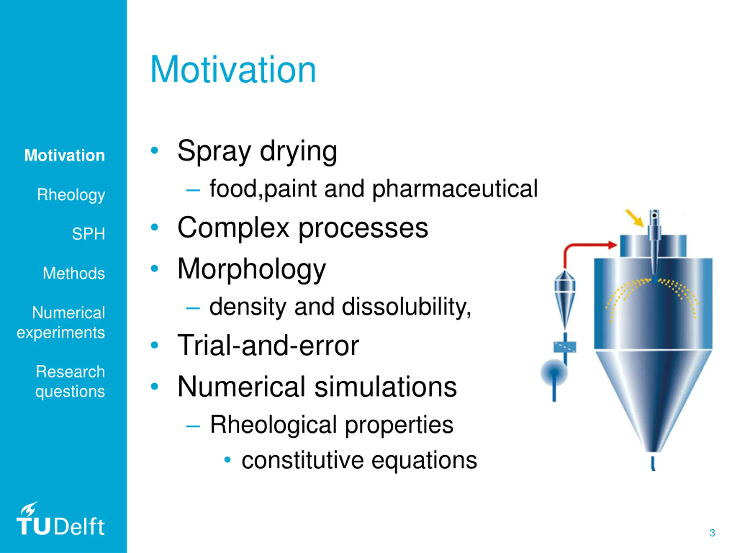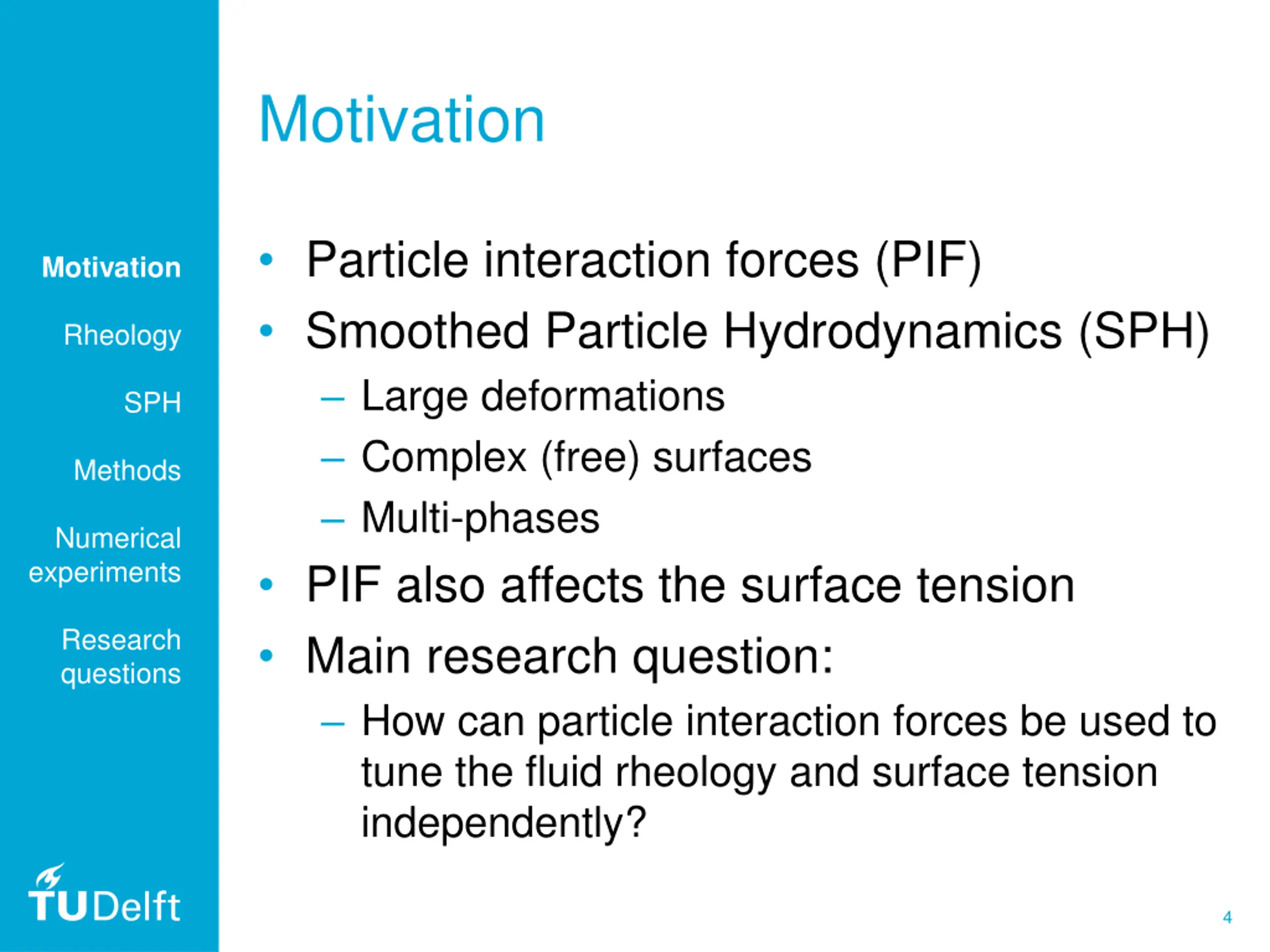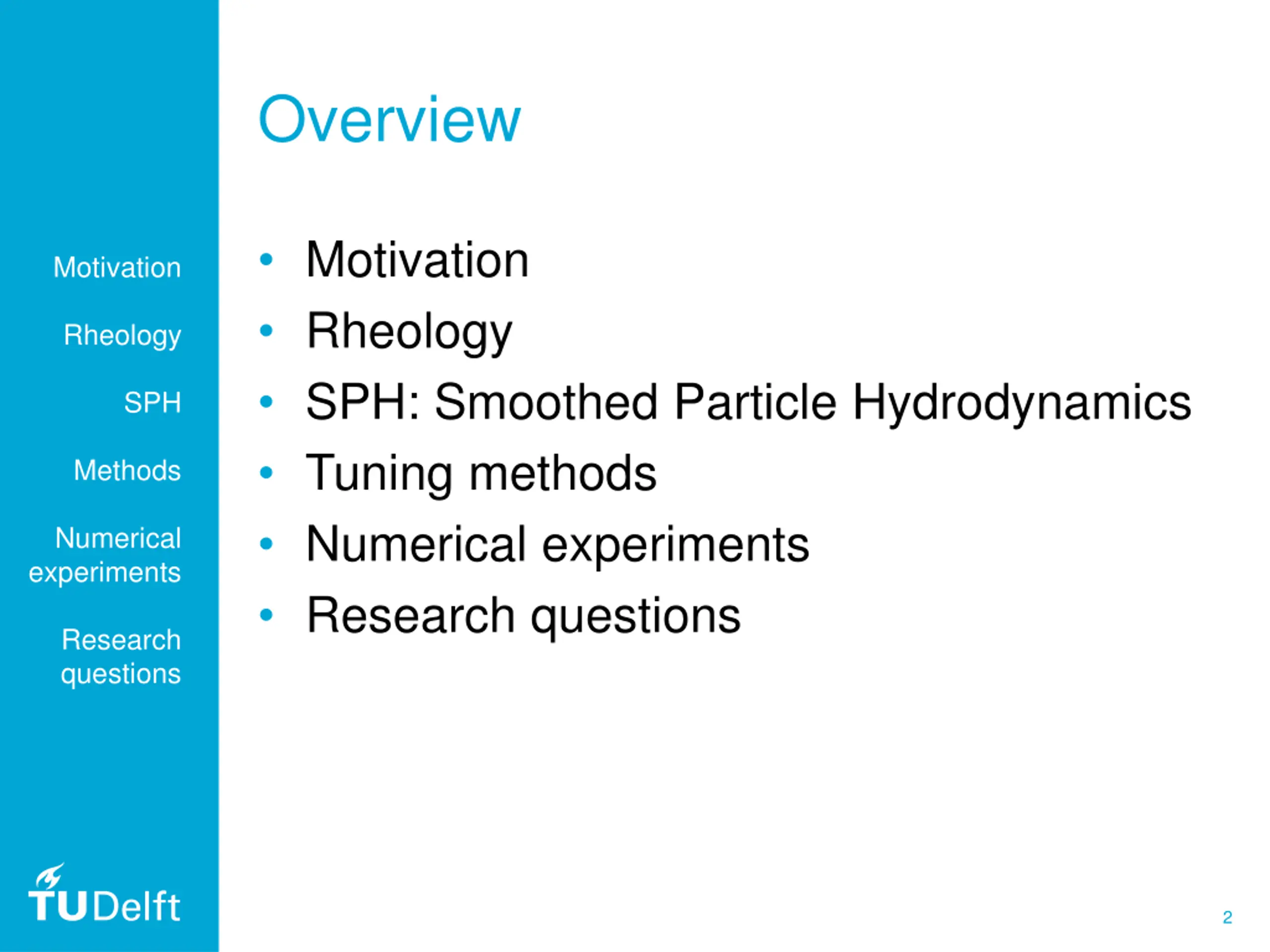 Overview Motivation Rheology SPH: Smoothed Particle Hydrodynamics Tuning methods Numerical experiments Research questions Motivation Rheology SPH Methods Numerical experiments Research questions 2