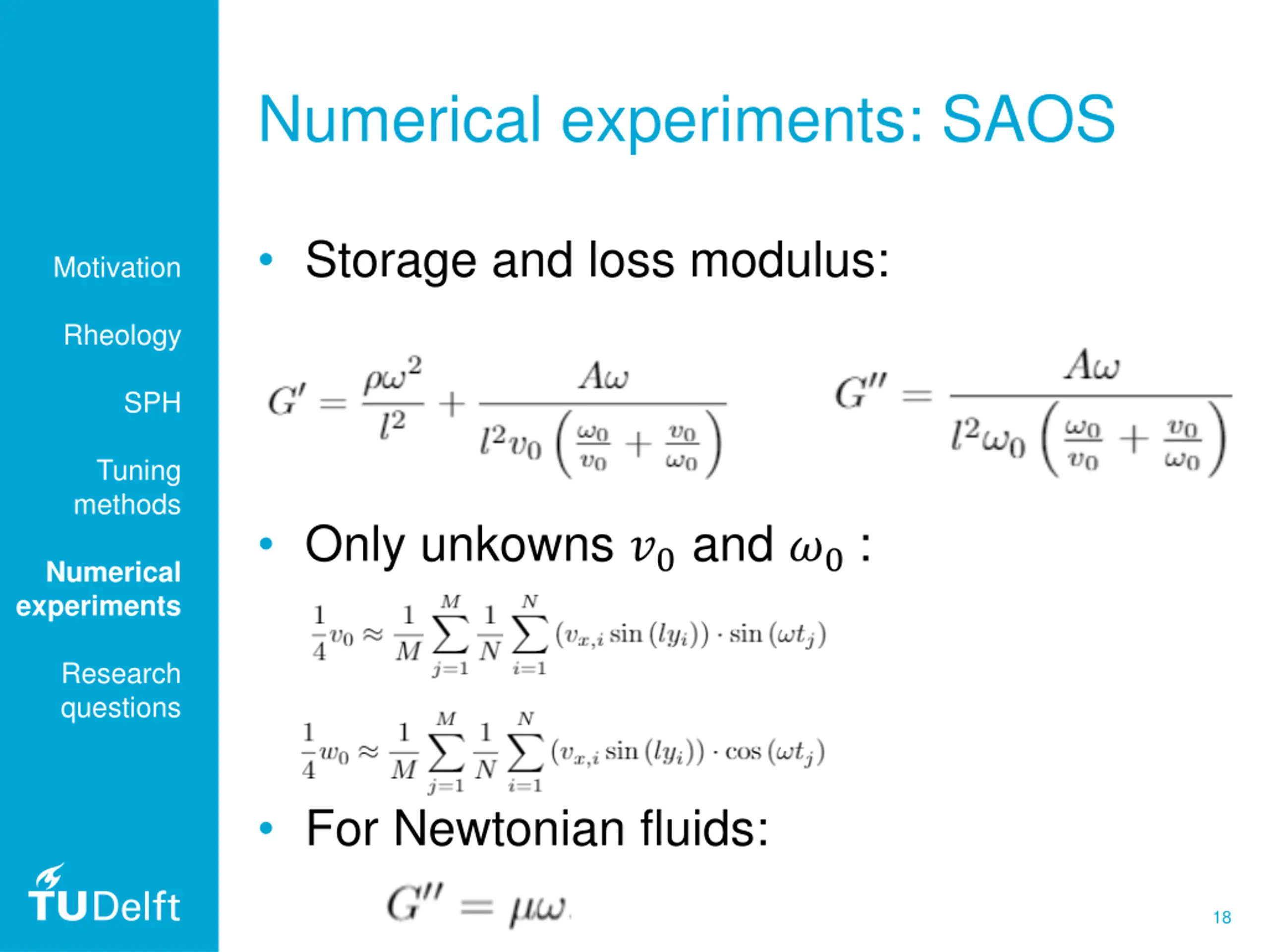 Numerical experiments: SAOS Storage and loss modulus: Motivation Rheology SPH Tuning methods Only unkowns ?0and ?0: Numerical experiments Research questions For Newtonian fluids: 18