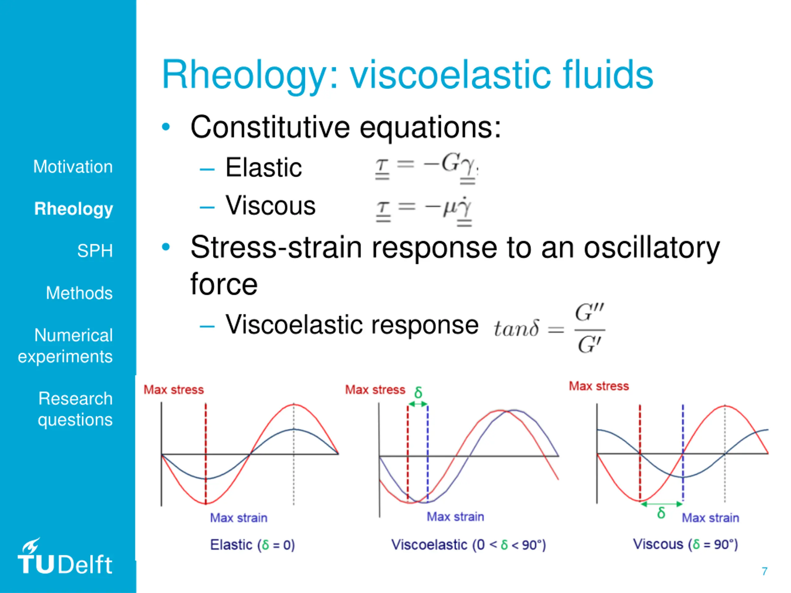 Rheology: viscoelastic fluids Constitutive equations: Elastic Viscous Stress-strain response to an oscillatory force Viscoelastic response Motivation Rheology SPH Methods Numerical experiments Research questions 7