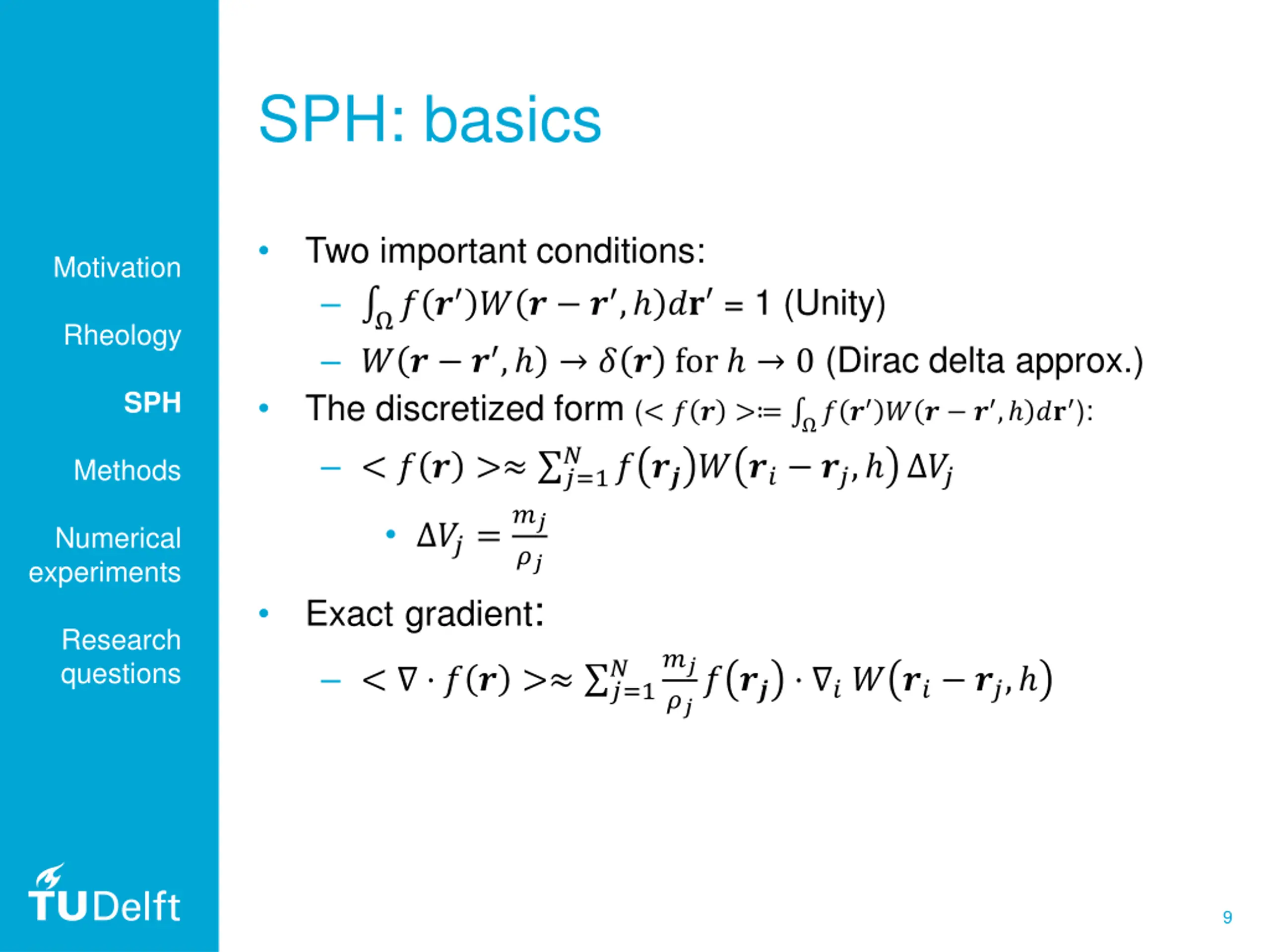 SPH: basics Mesh-free, particle method ? ? < ? ? > ? ? ? ? ? , ?? Motivation Rheology SPH Methods Numerical experiments Research questions 8