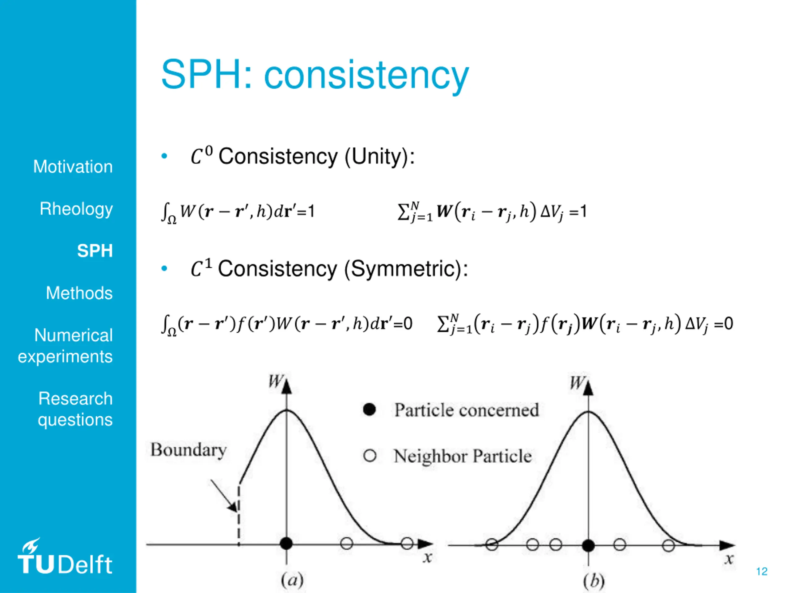 SPH: consistency ?0Consistency (Unity): Motivation Rheology ? ? ? ? , ?? =1 ? ?? ??, ??=1 ?=1 SPH ?1Consistency (Symmetric): Methods ? ? ? ? ? ? ? ? , ?? =0 ?=1 ?? ??? ??? ?? ??, ??=0 Numerical experiments Research questions 12