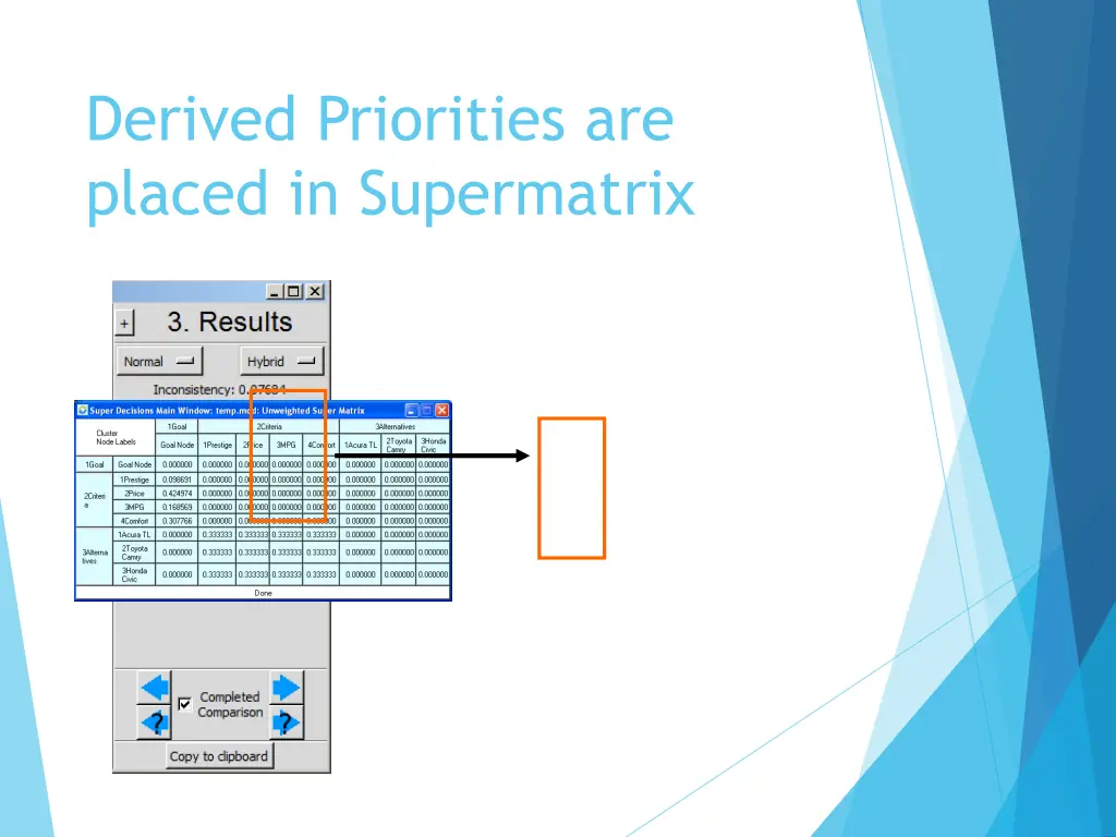 Derived Priorities are placed in Supermatrix