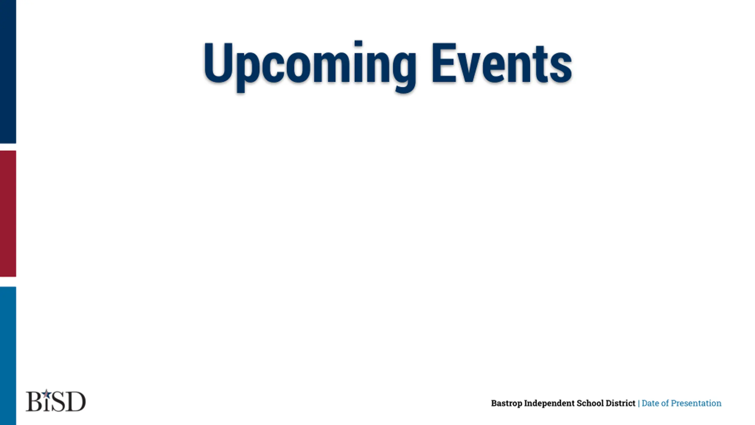 Upcoming Events Bastrop Independent School District | Date of Presentation