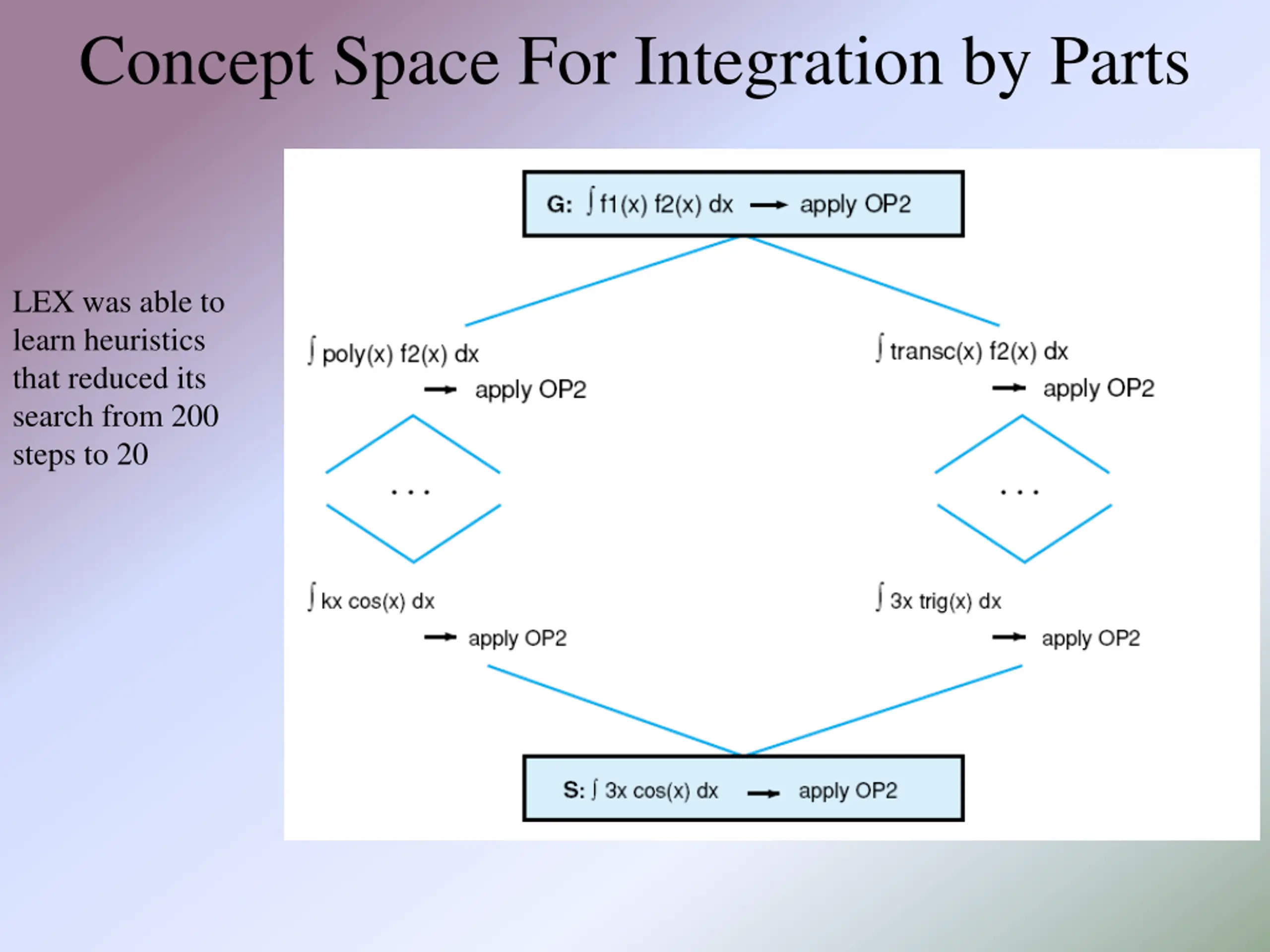 Concept Space For Integration by Parts LEX was able to learn heuristics that reduced its search from 200 steps to 20