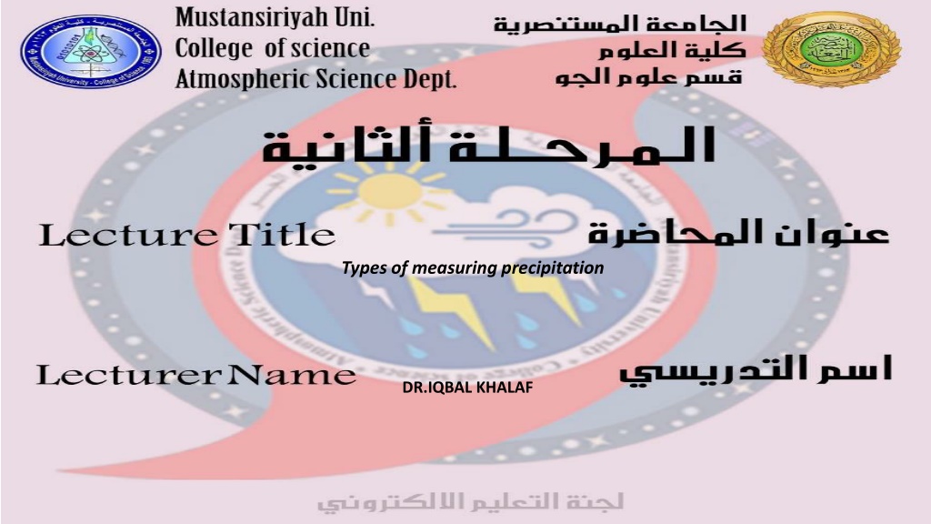 Types of measuring precipitation Types of measuring precipitation There are many types of measuring precipitation :- Cylindrical Rain Gauges Ordinary Rain Gauges Siphon Rain Gauges Tipping Bucket Rain Gauges Tipping Bucket Rain Gauge Recorder Exposure Windshields Precipitation calculations:- There are different ways to calculate the amount of precipitation for a certain area:- Arithmetic Mean Method Thiessen Average Method Isohyetal Line Method Triangulation method Balance method