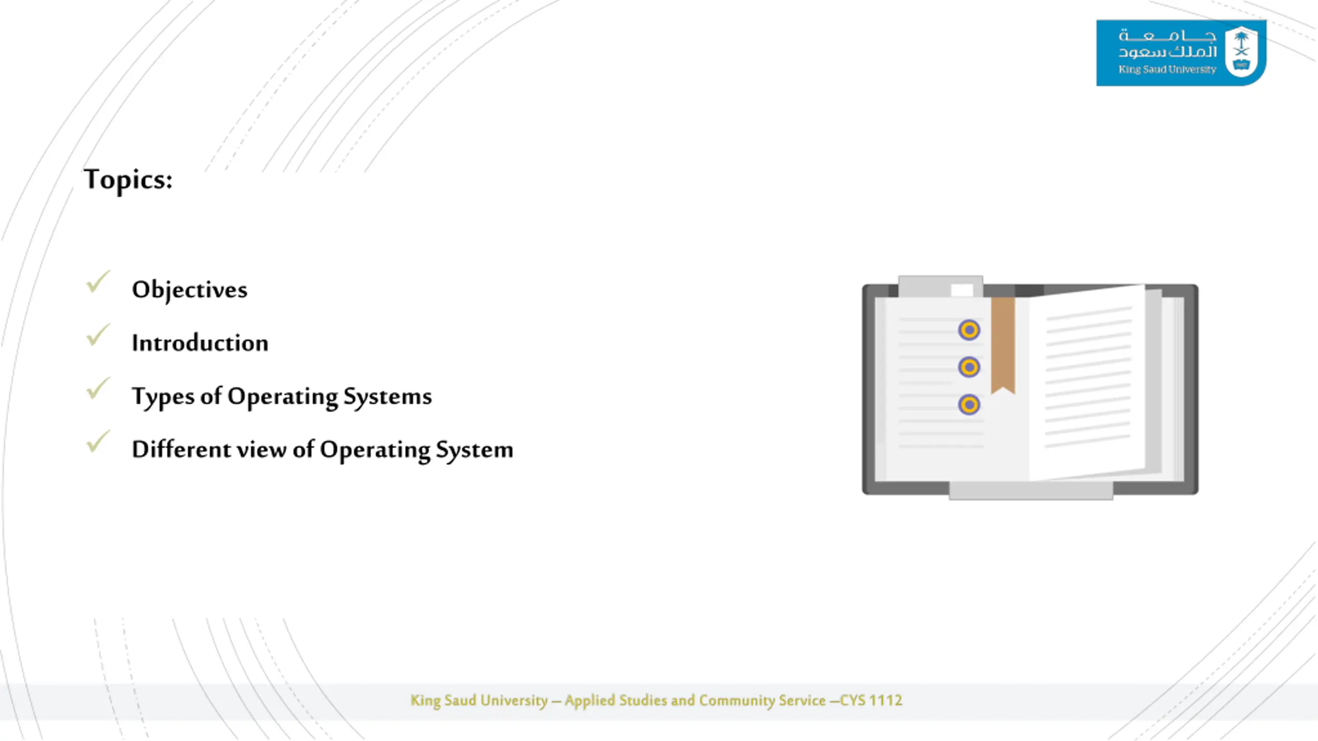 Topics: Objectives Introduction Types of Operating Systems Different view of Operating System King Saud University Applied Studies and Community Service CYS 1112
